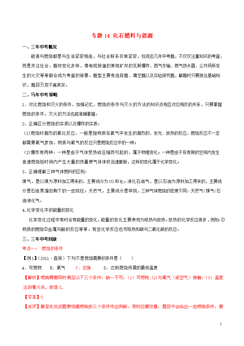 试题-全国-2014_2014年中考化学 核心考点二轮专项训练 专题14 化石燃料与能源