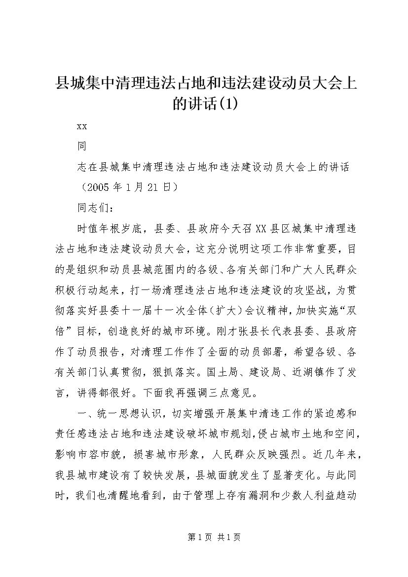 县城集中清理违法占地和违法建设动员大会上的讲话(2)