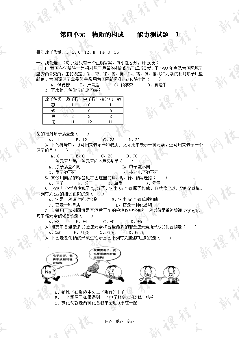 试题-全国-2009_九年级化学物质的构成-能力测试题1