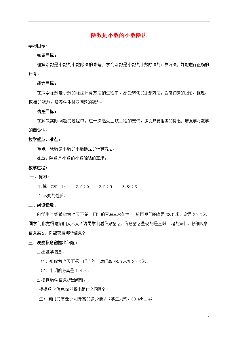 教案-全国-2011_四年级数学上册 除数是小数的小数除法教案 青岛版五年制