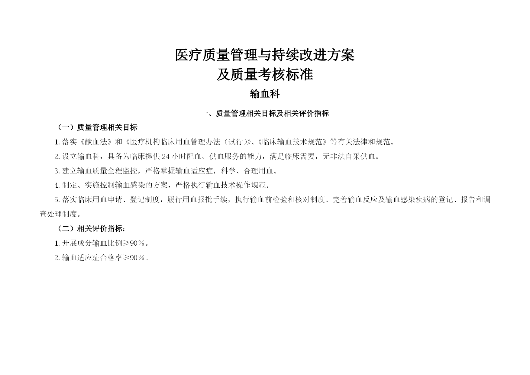 (输血科)医疗质量管理与持续改进相关目标及质量考核标准[1]