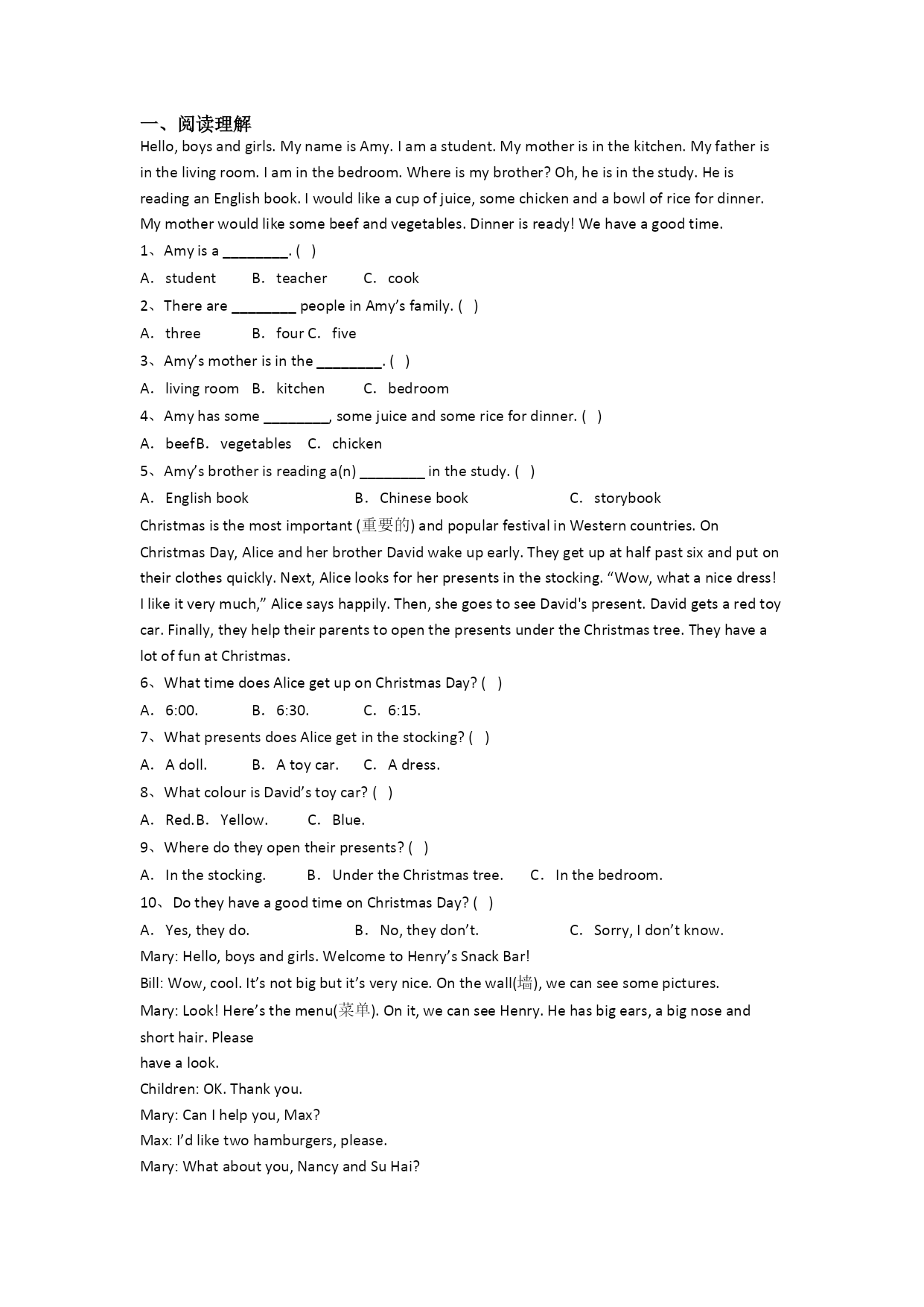 北师大版四年级上册期末英语综合试题测试题(及答案)