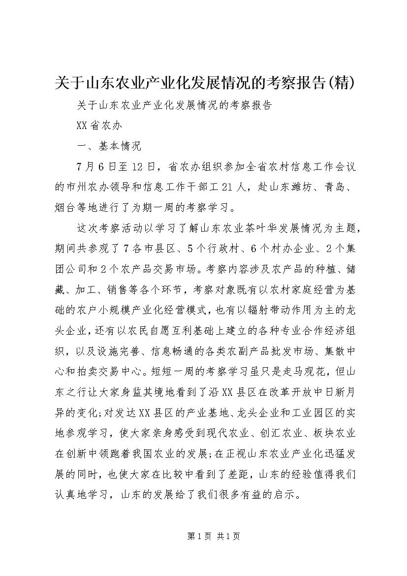 关于山东农业产业化发展情况的考察报告(精) (5)
