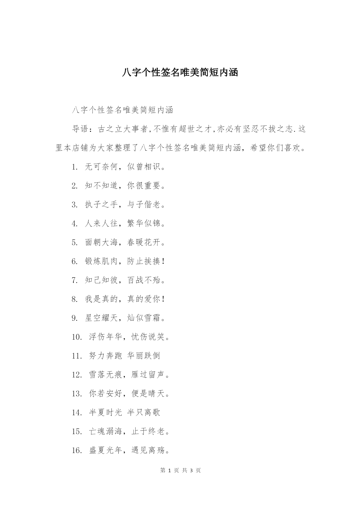 八字个性签名唯美简短内涵