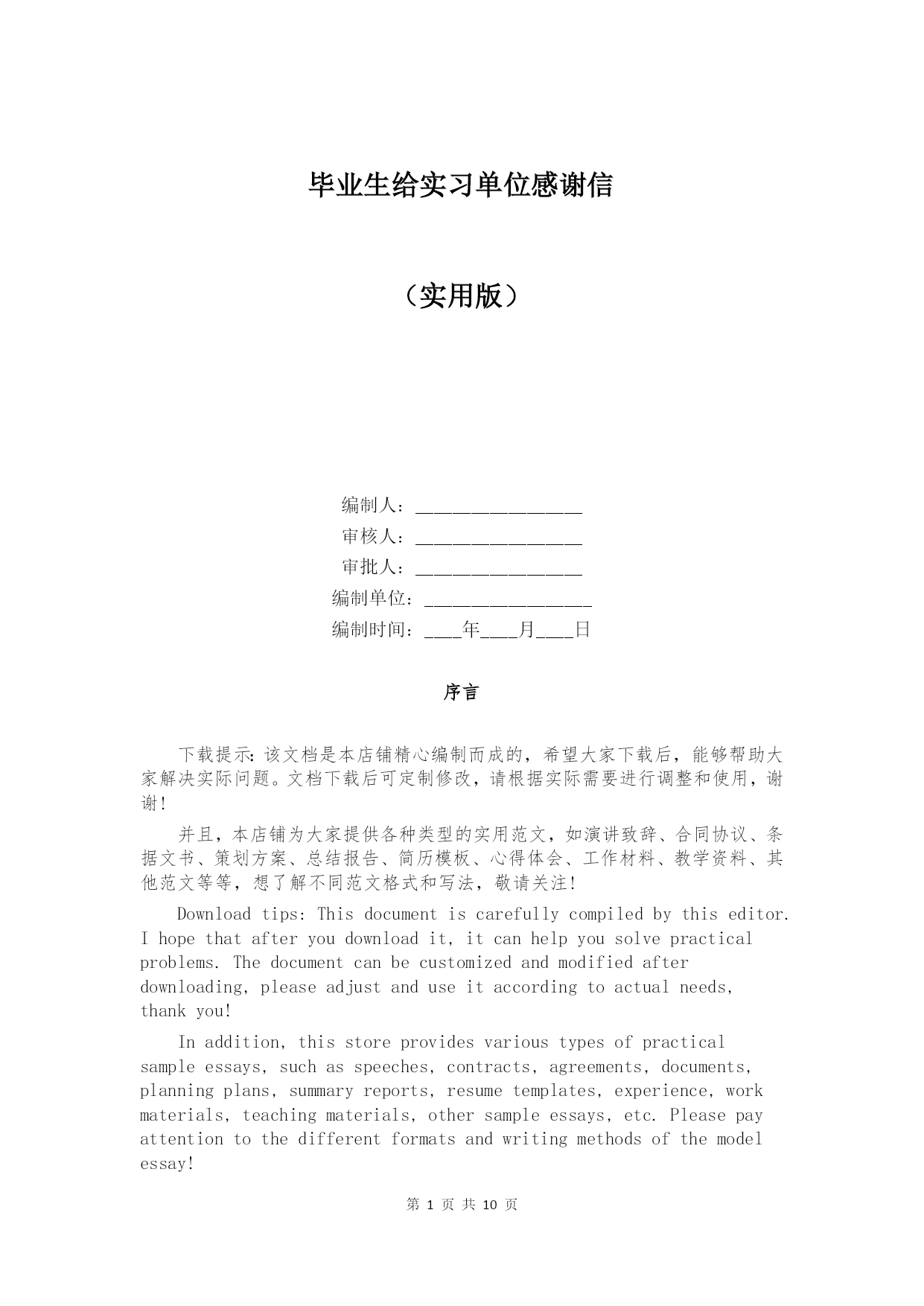 毕业生给实习单位感谢信