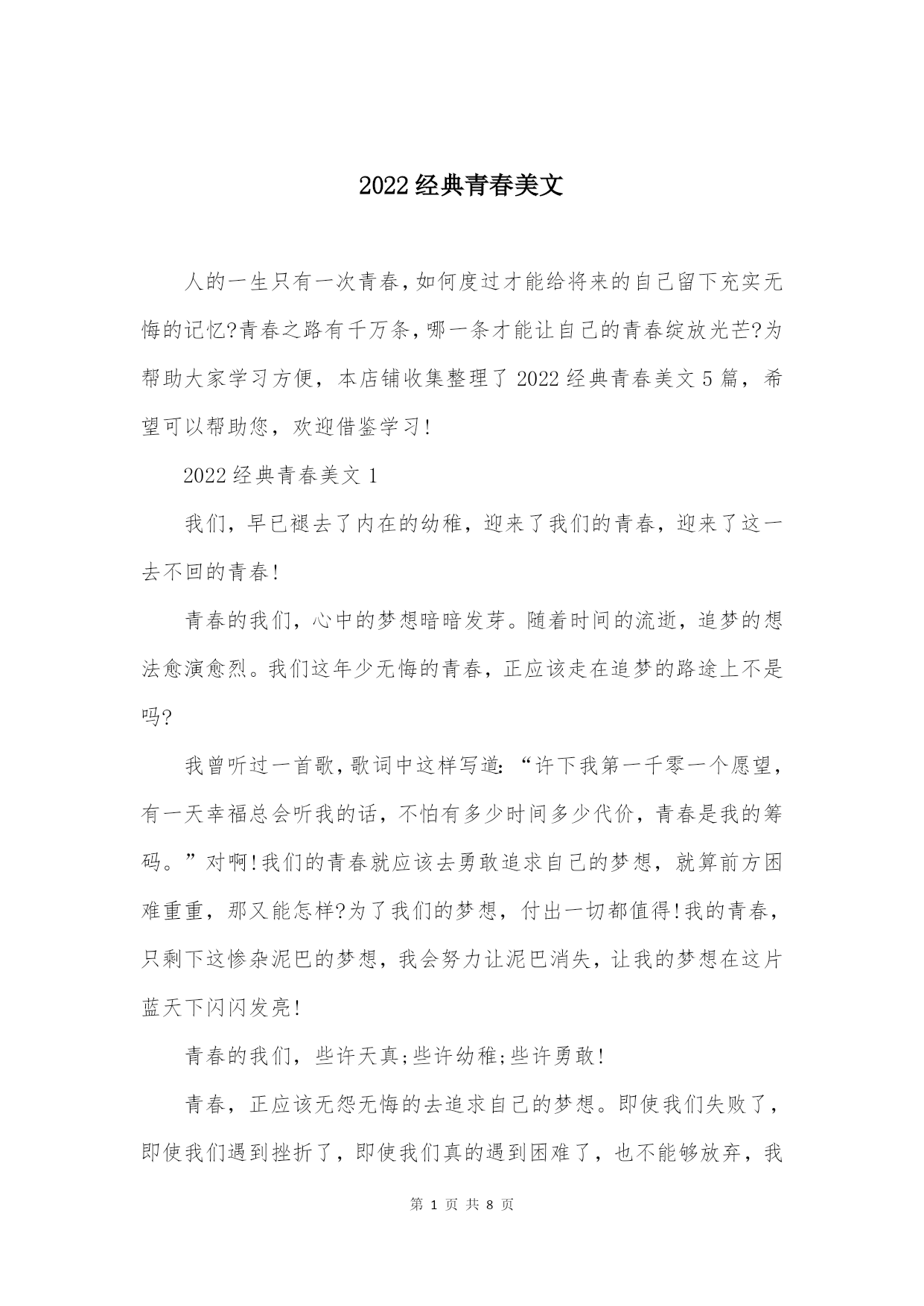 2022经典青春美文