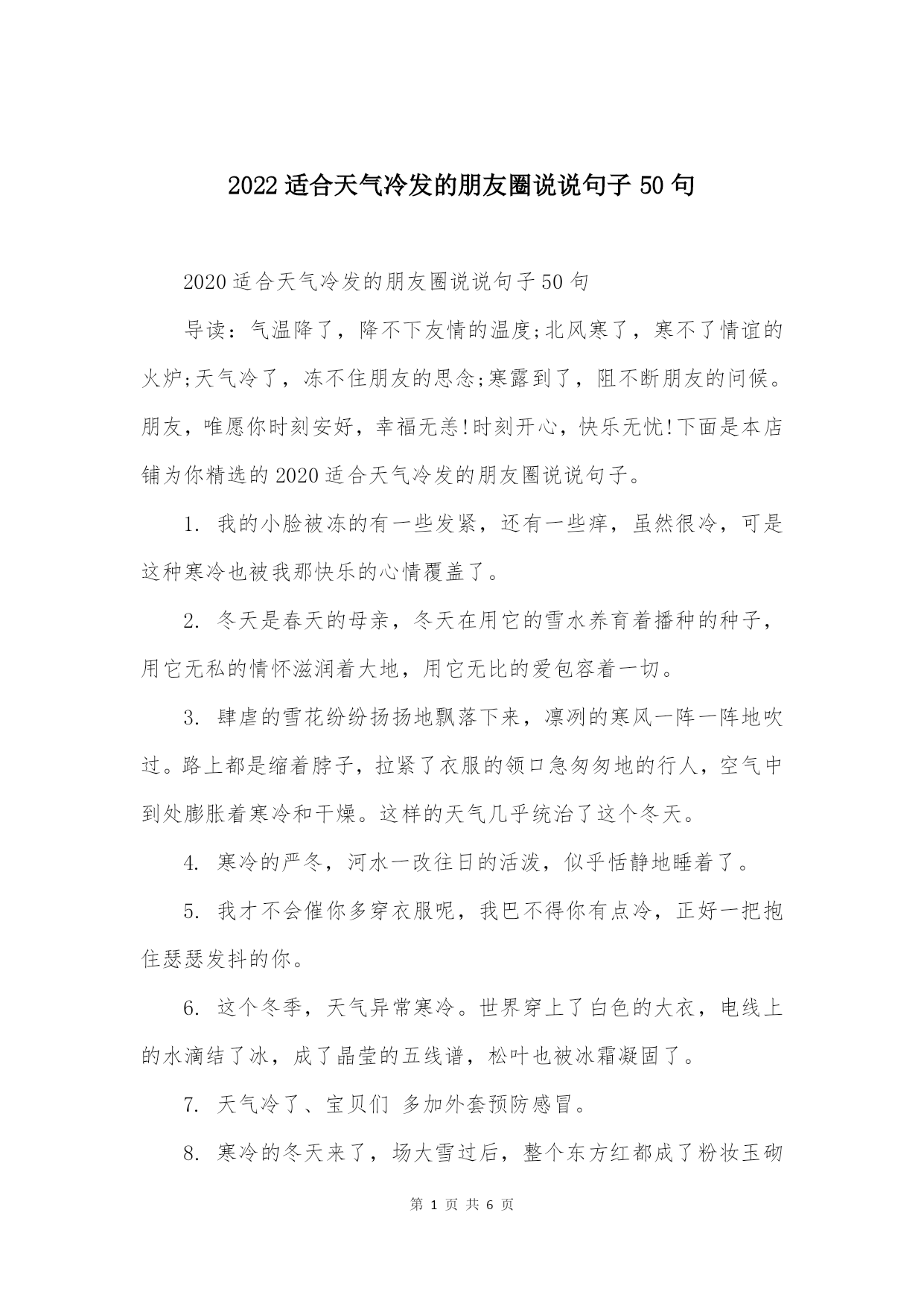 2022适合天气冷发的朋友圈说说句子50句