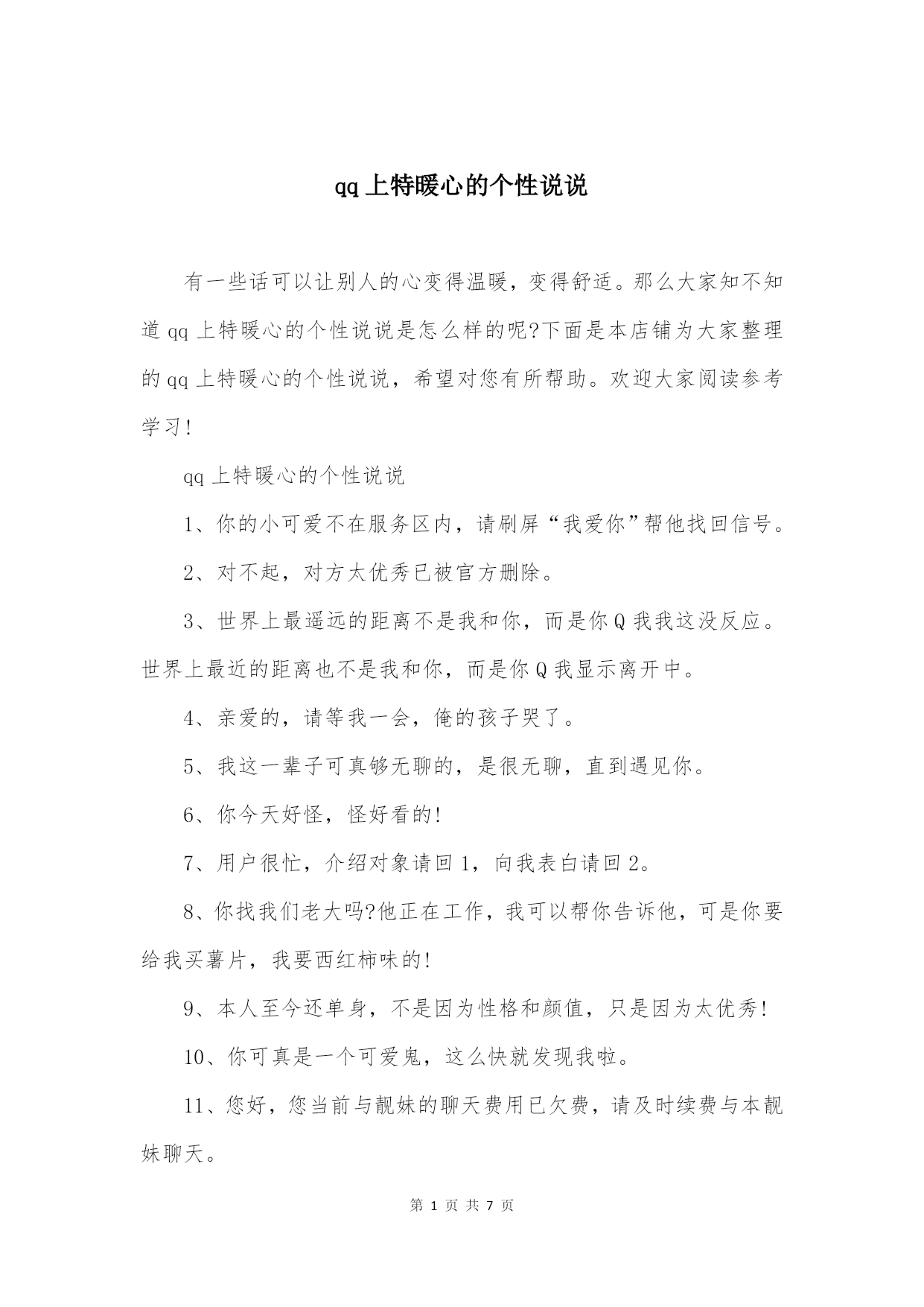 qq上特暖心的个性说说
