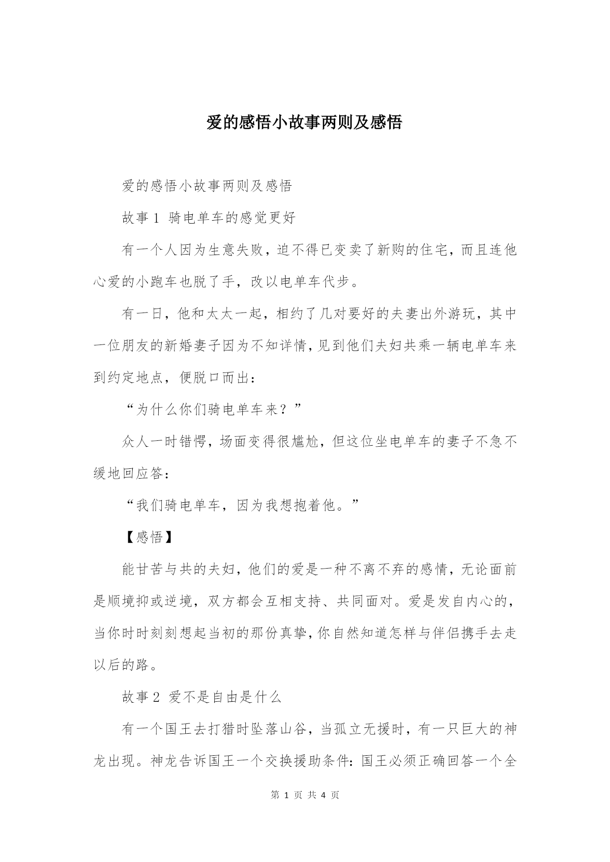 爱的感悟小故事两则及感悟