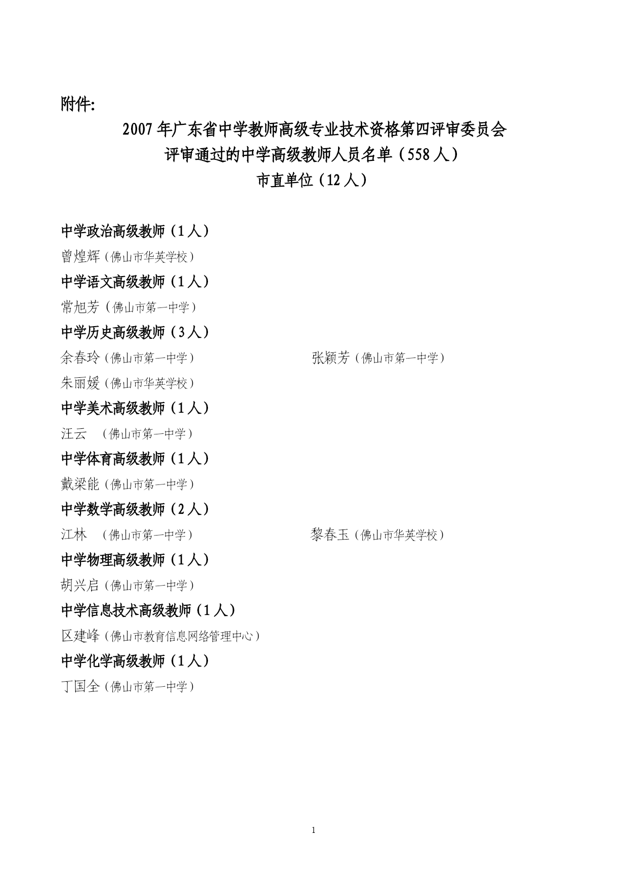 年广东省中学教师高级专业技术资格第四评审委员会