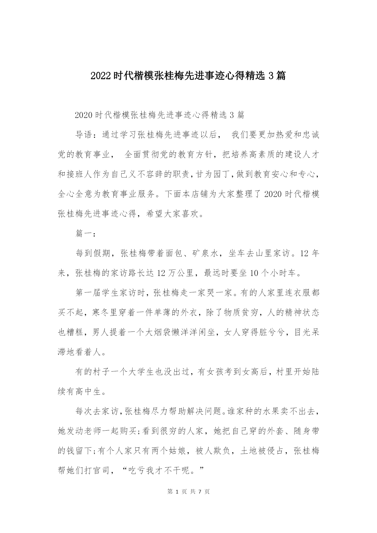 2022时代楷模张桂梅先进事迹心得精选3篇
