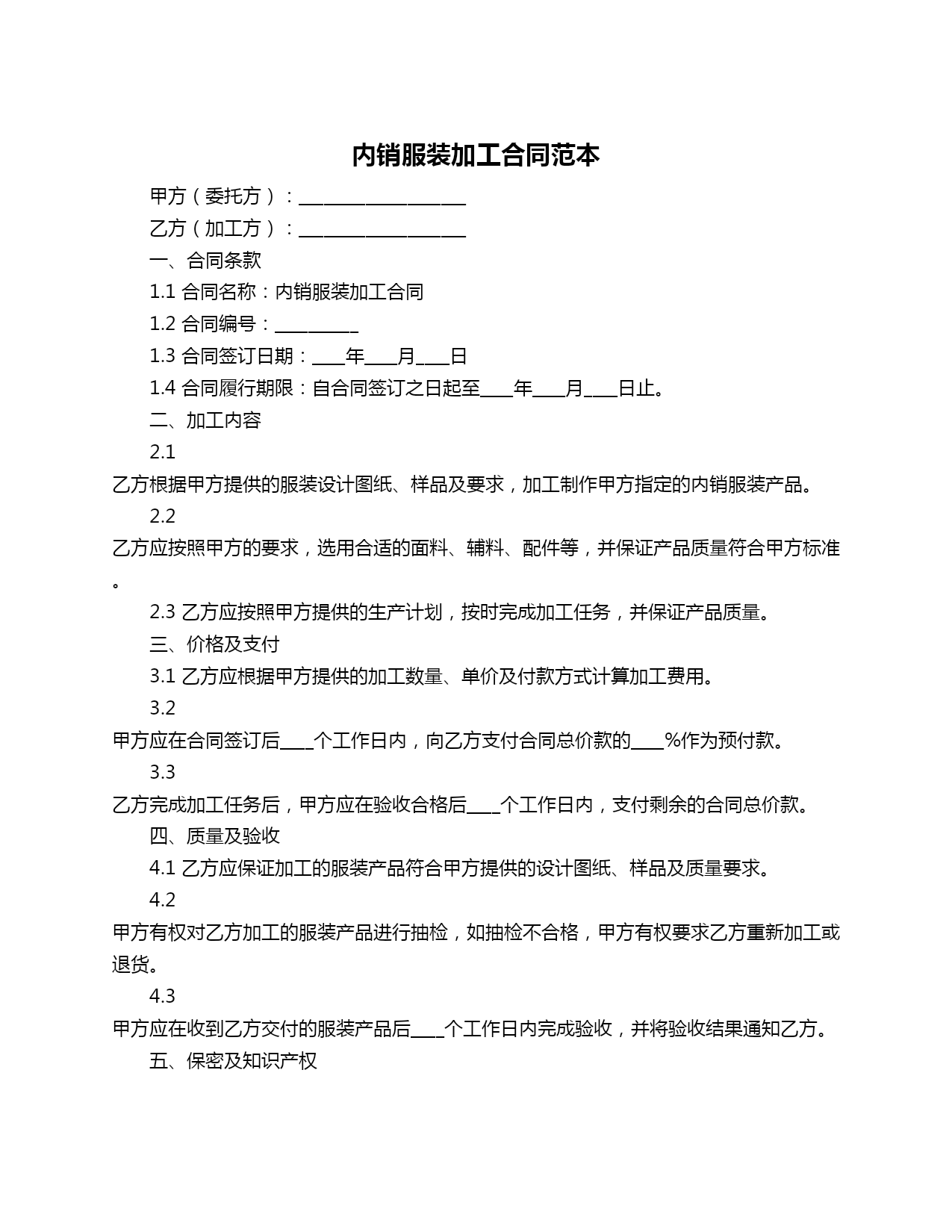 内销服装加工合同范本