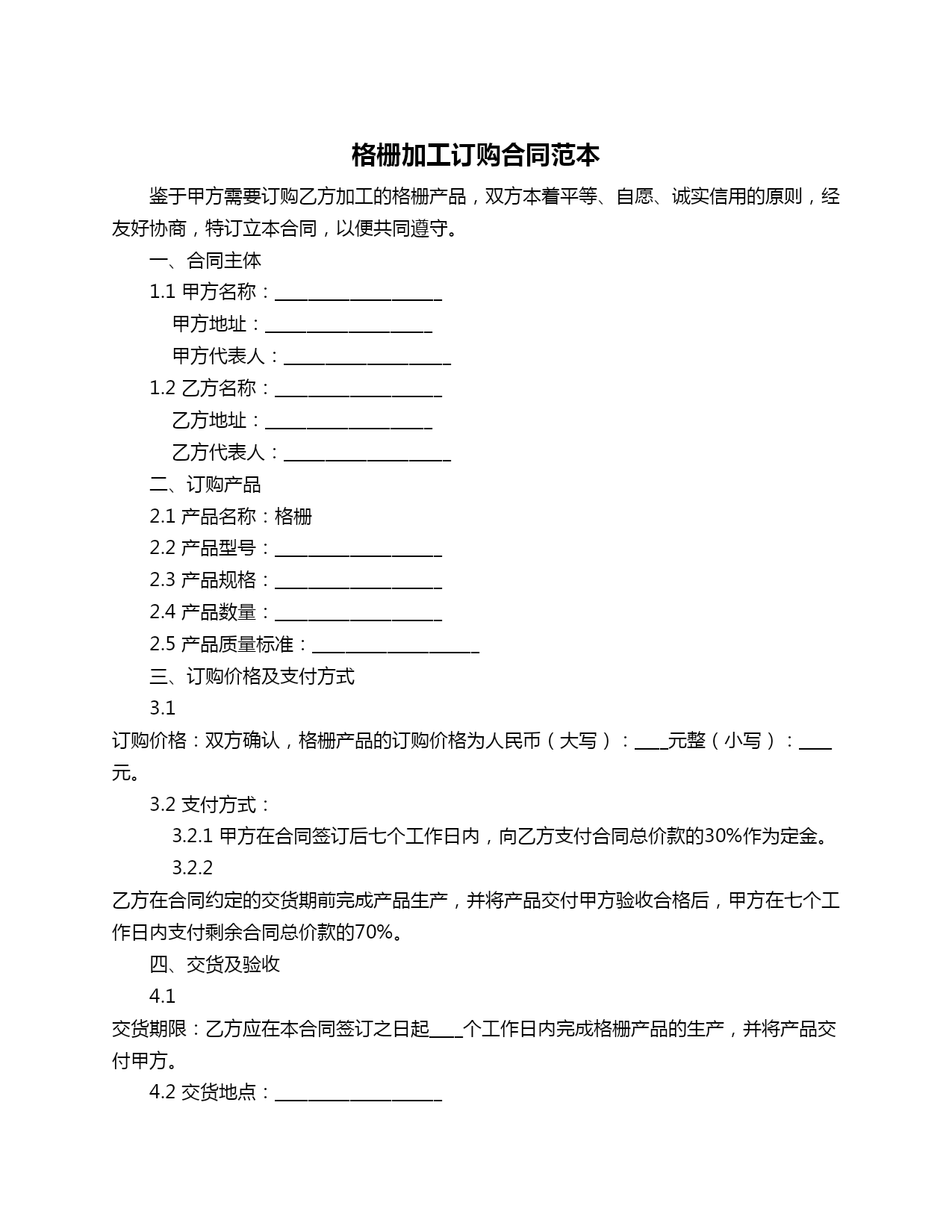 格栅加工订购合同范本