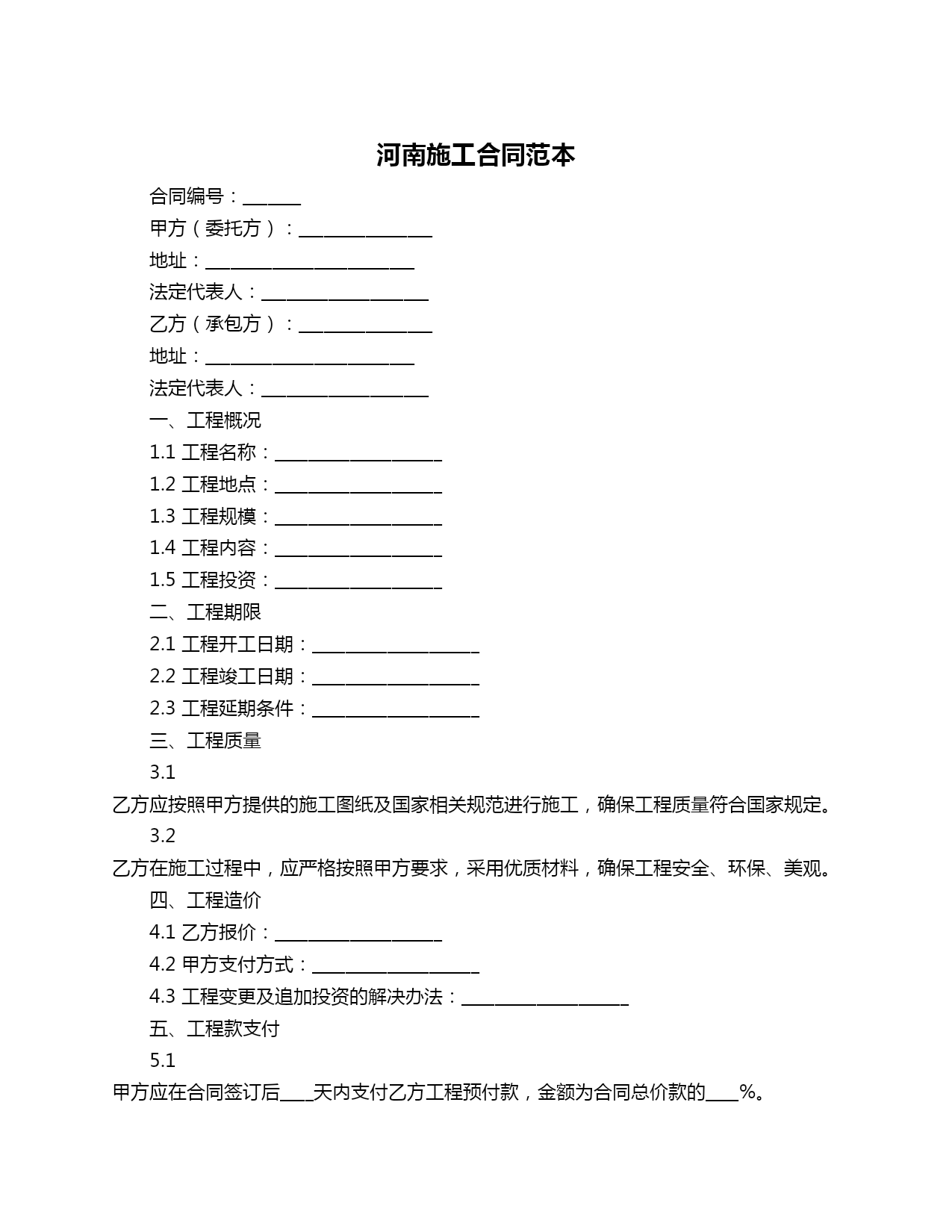 河南施工合同范本