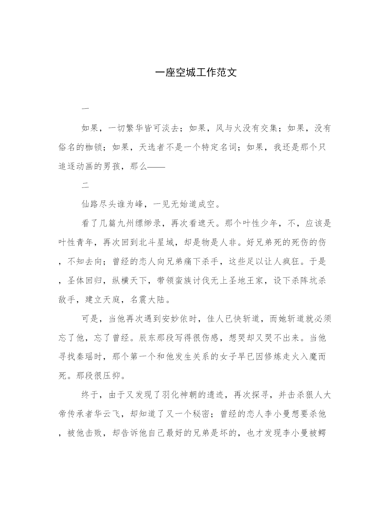 一座空城工作范文