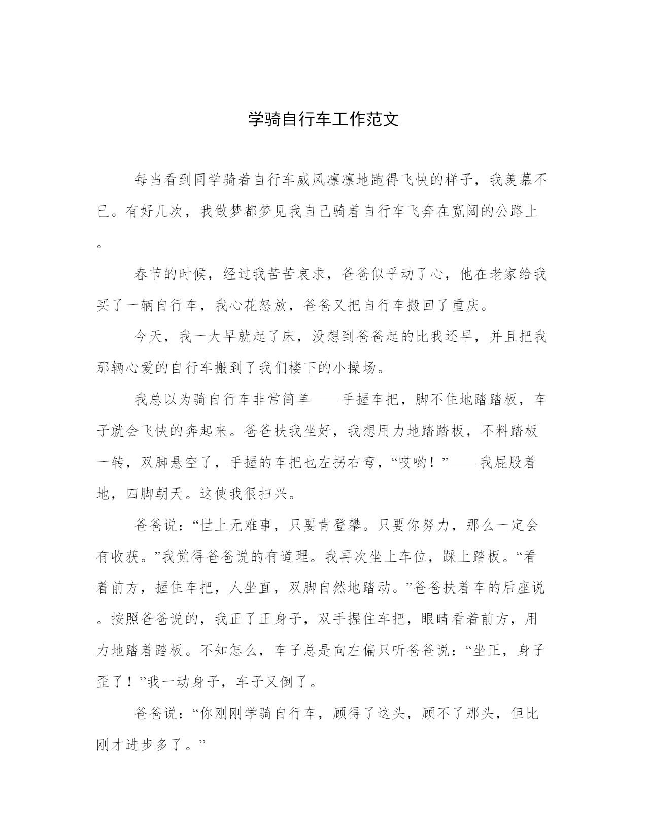 学骑自行车工作范文