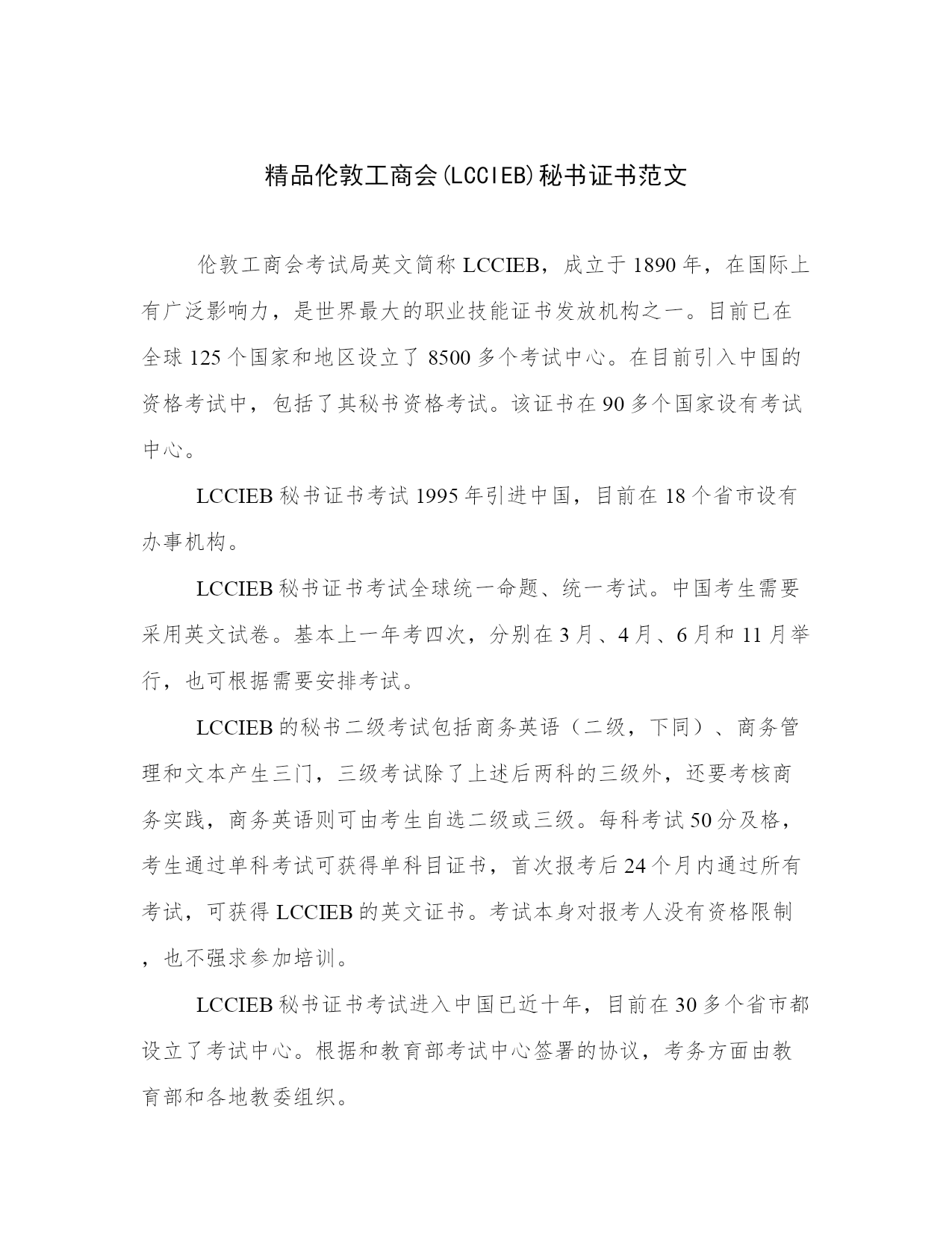 精品伦敦工商会(LCCIEB)秘书证书范文