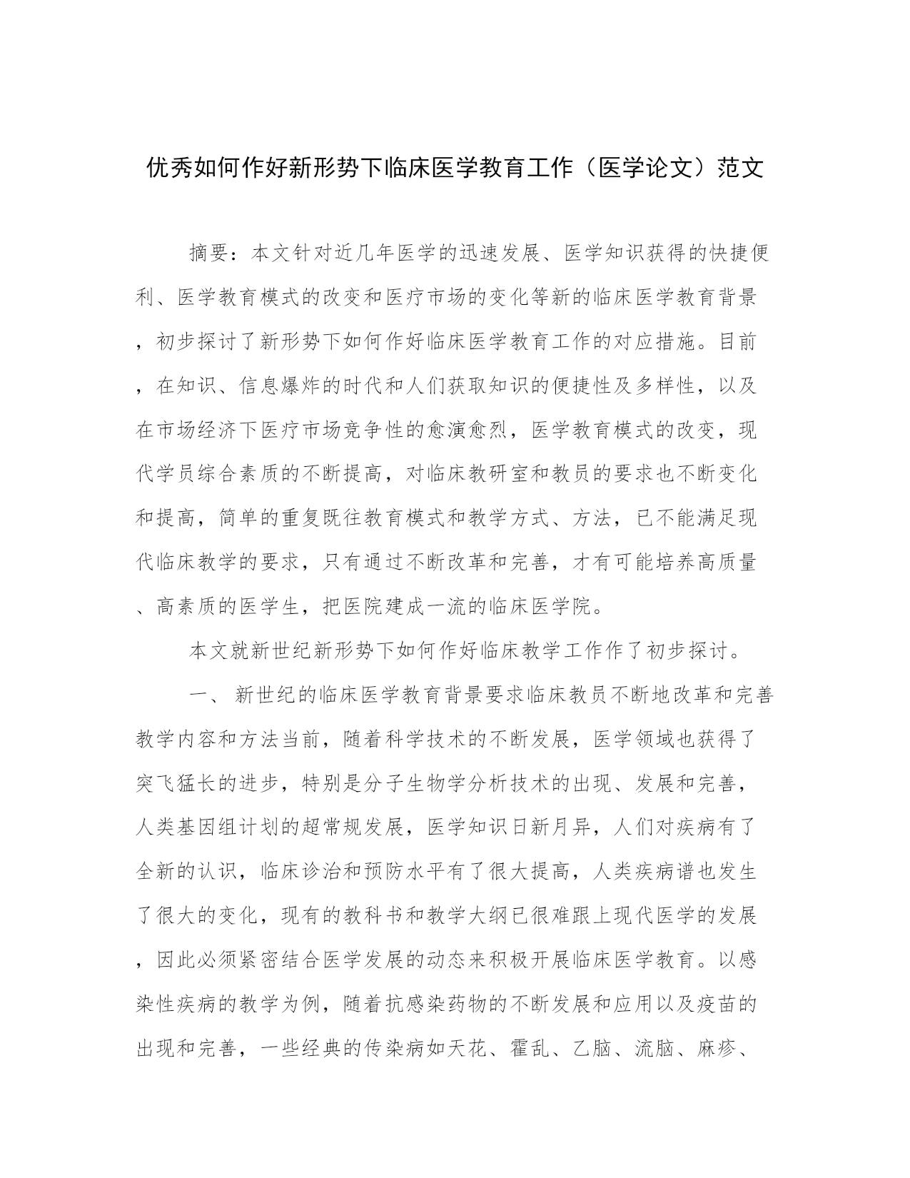 优秀如何作好新形势下临床医学教育工作(医学论文)范文