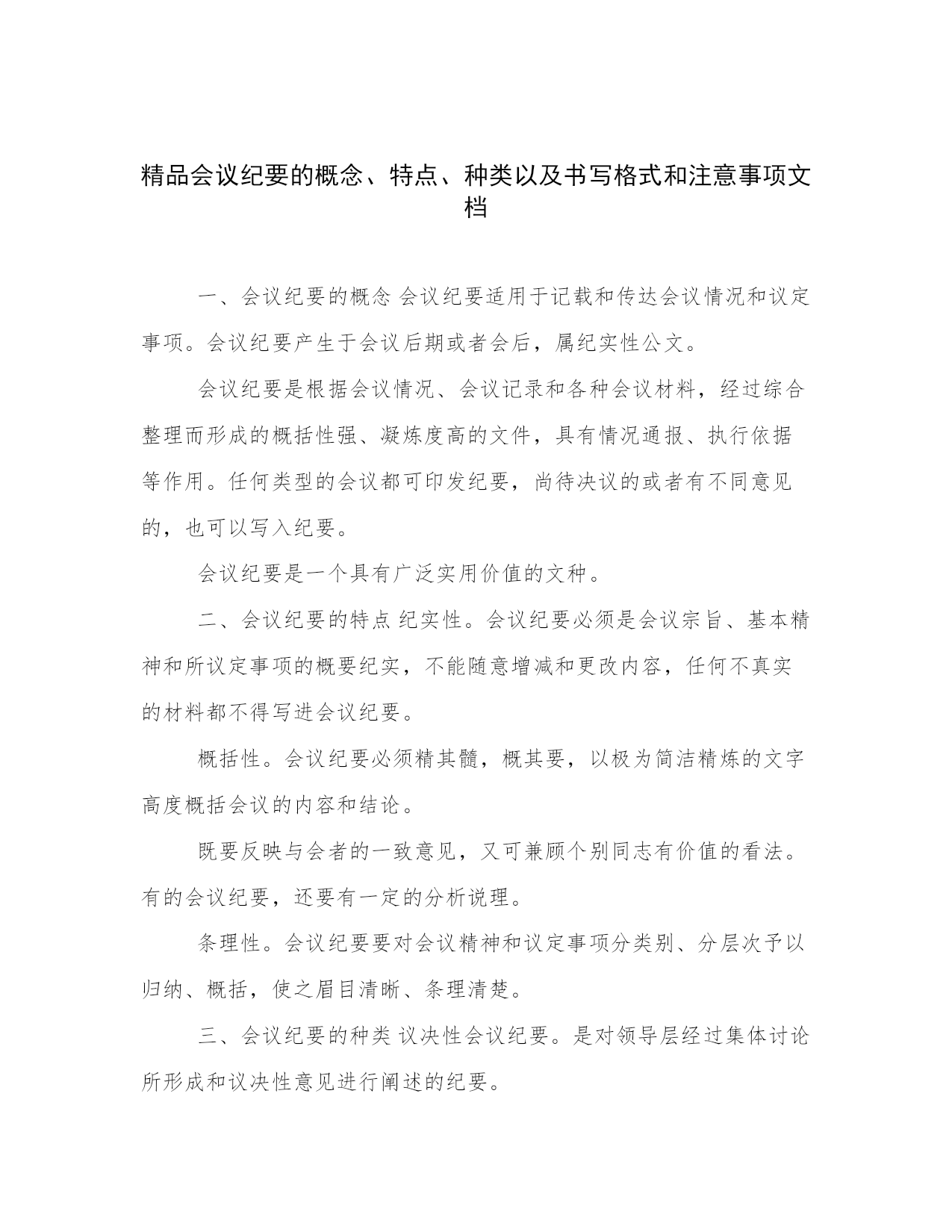 精品会议纪要的概念、特点、种类以及书写格式和注意事项文档