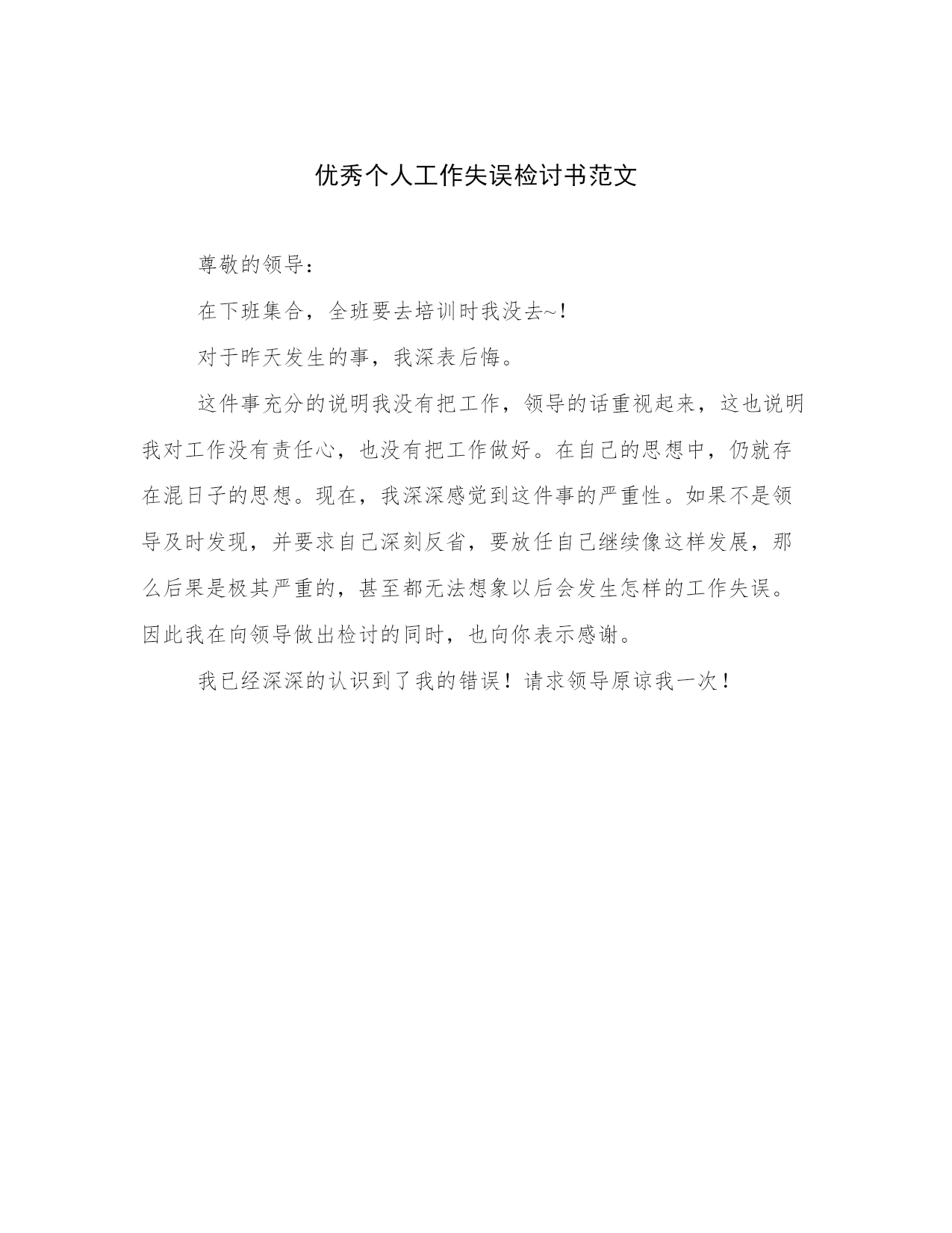 优秀个人工作失误检讨书范文