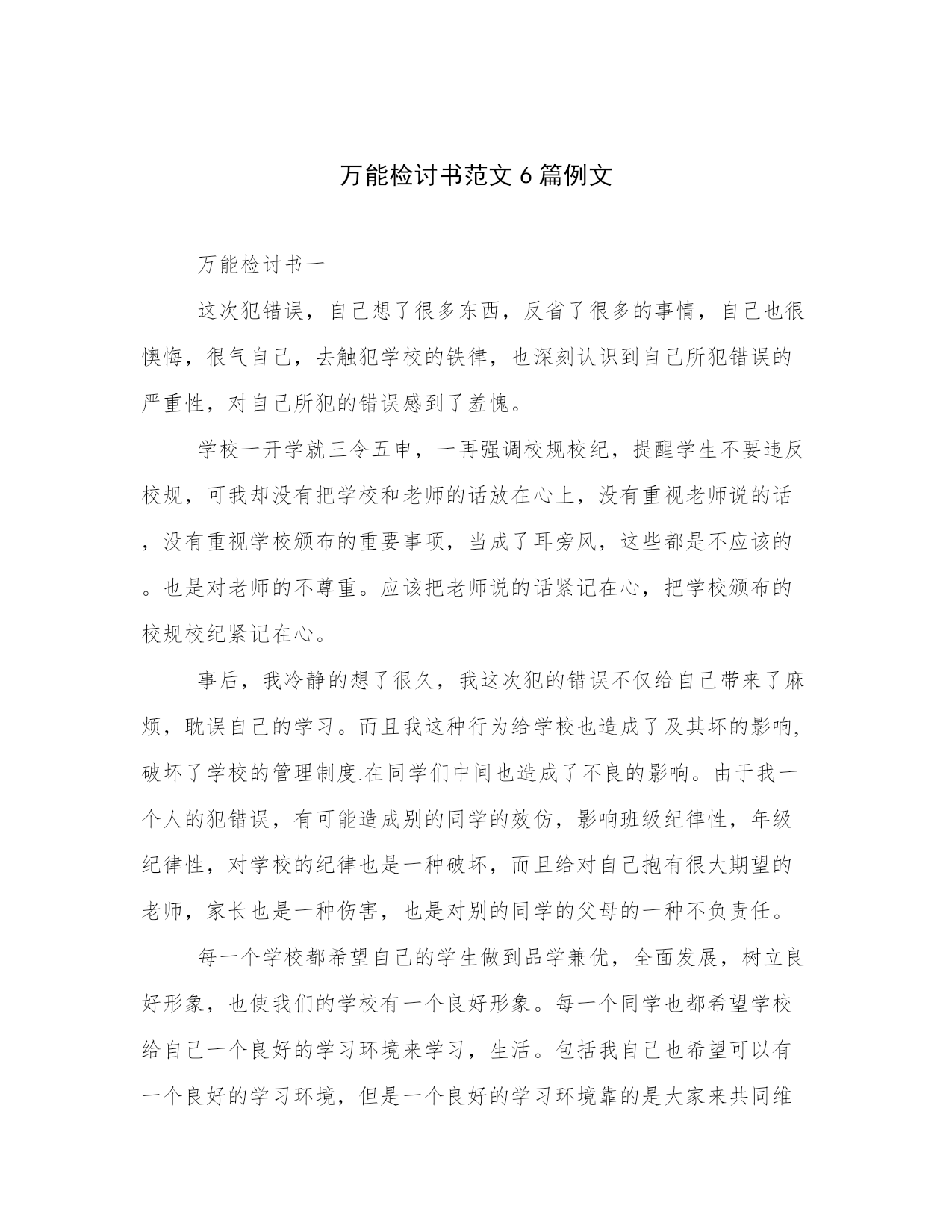 万能检讨书范文6篇例文