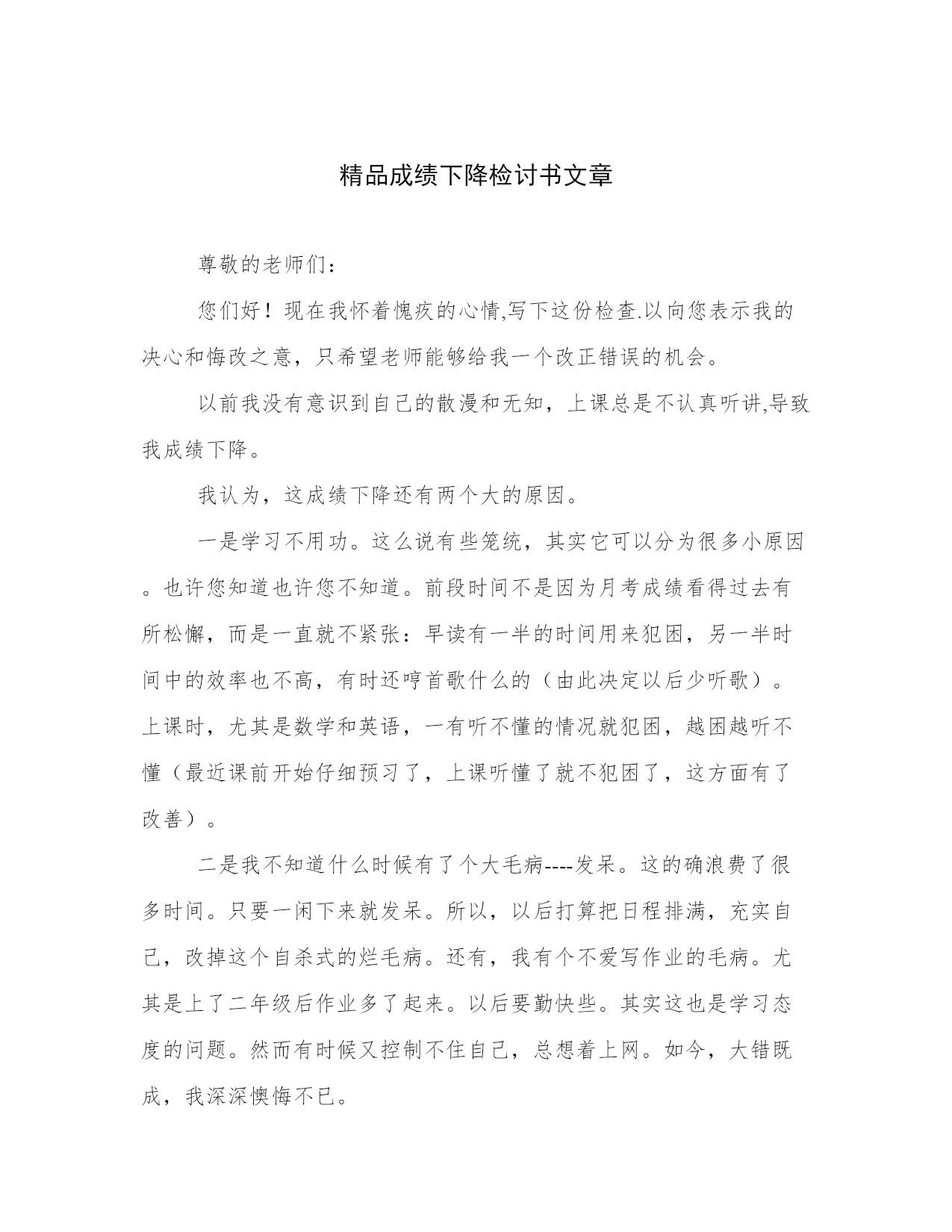 精品成绩下降检讨书文章