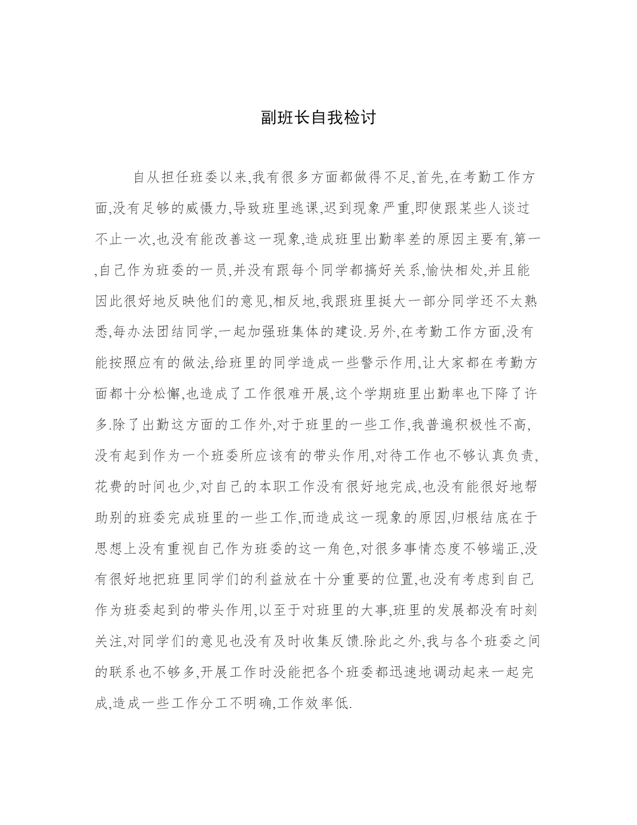 副班长自我检讨