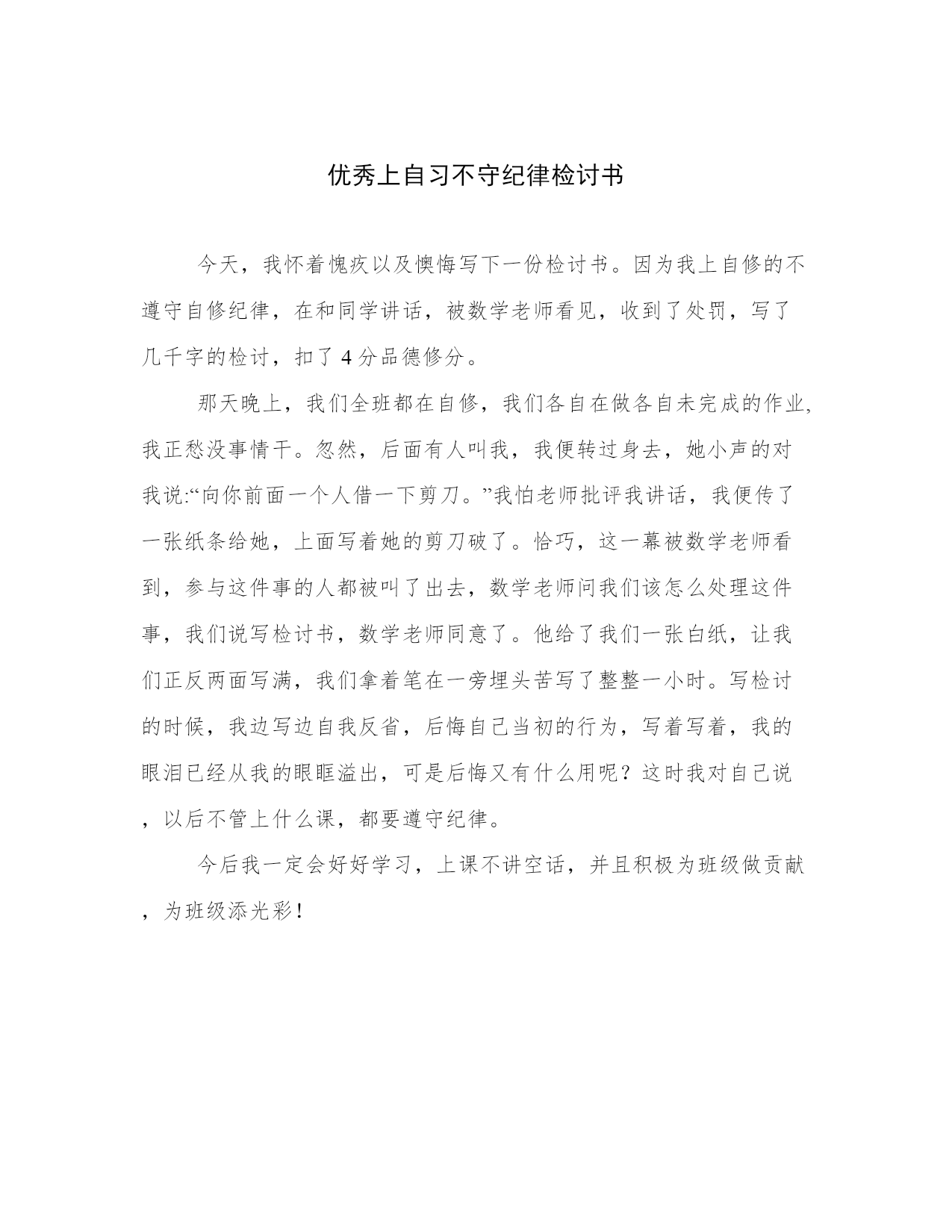 优秀上自习不守纪律检讨书