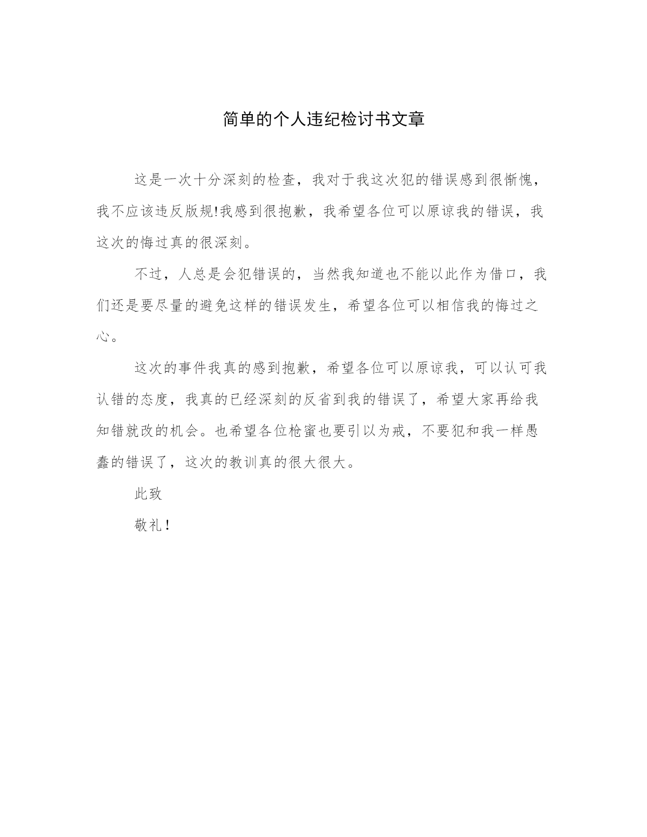 简单的个人违纪检讨书文章