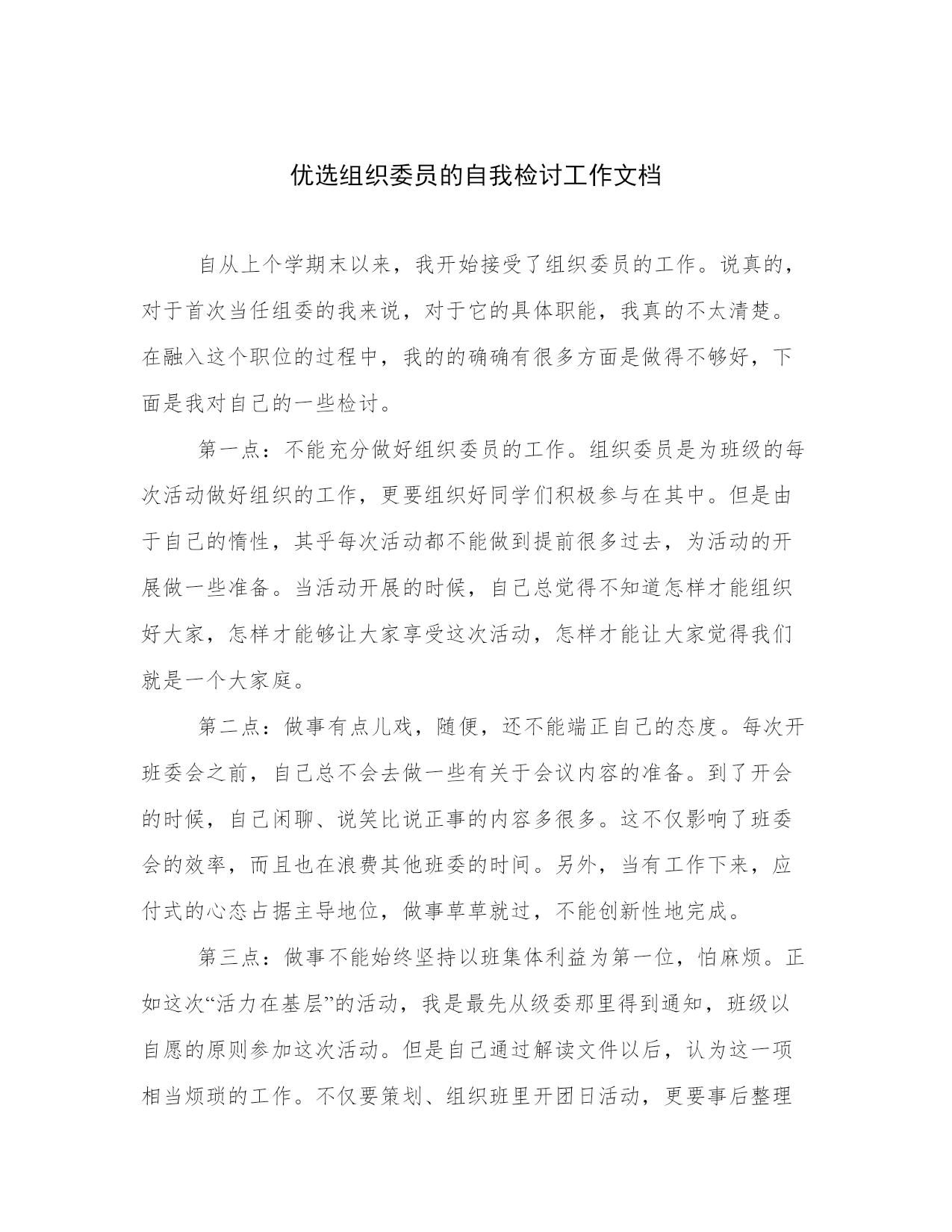 优选组织委员的自我检讨工作文档
