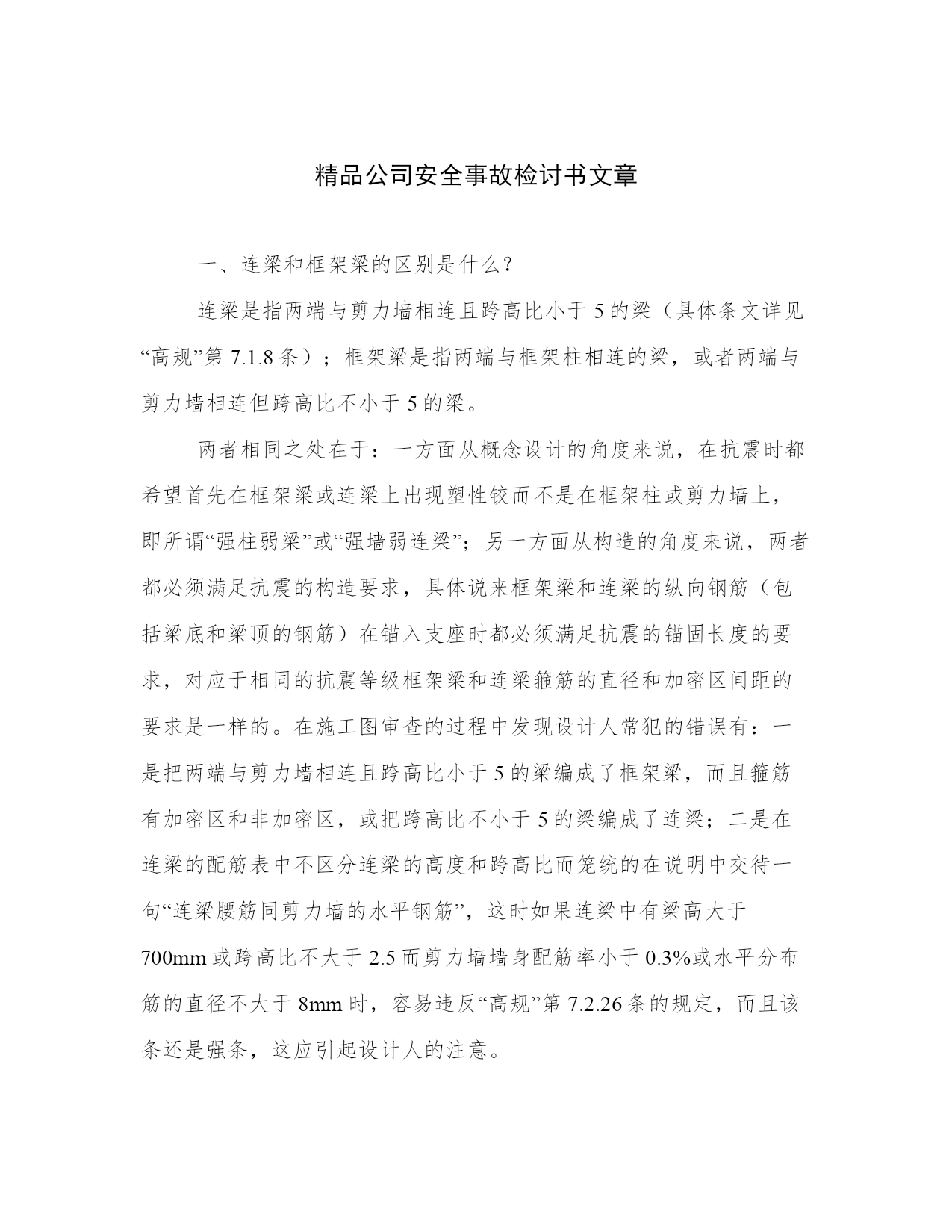 精品公司安全事故检讨书文章