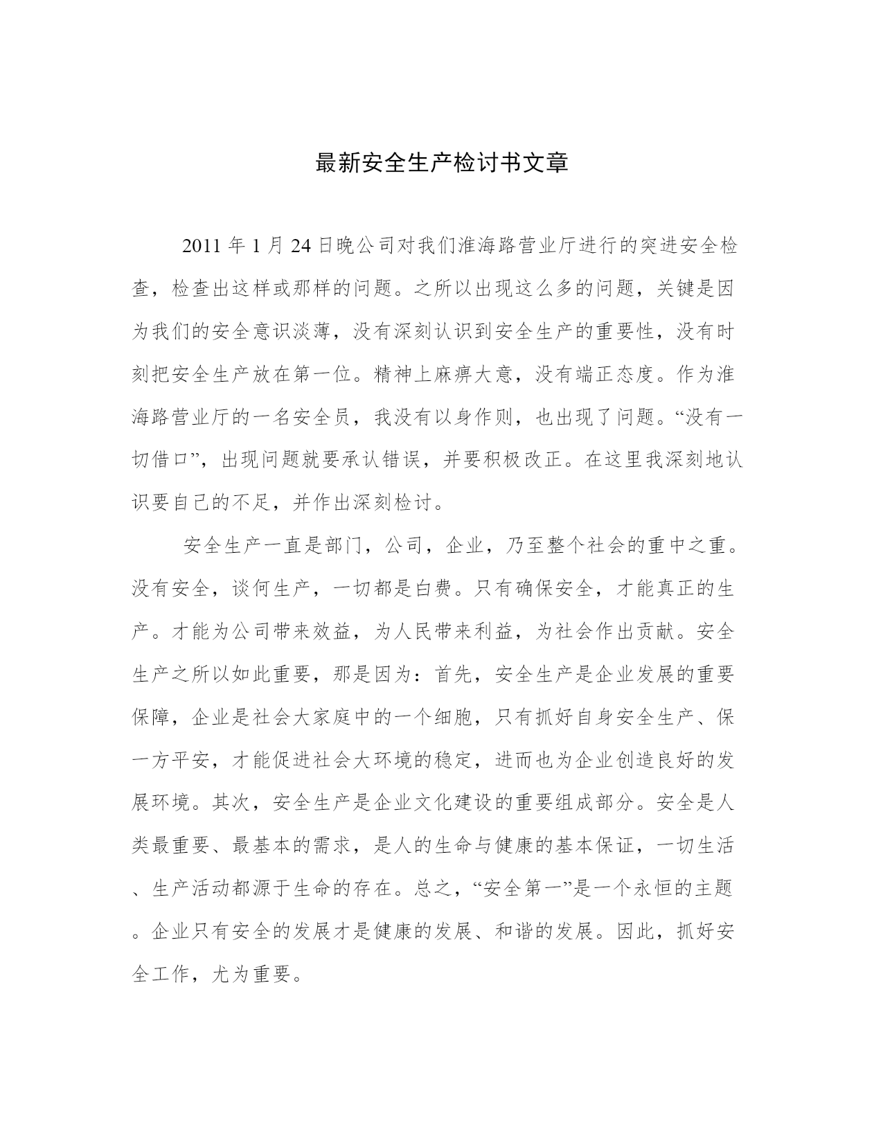 最新安全生产检讨书文章