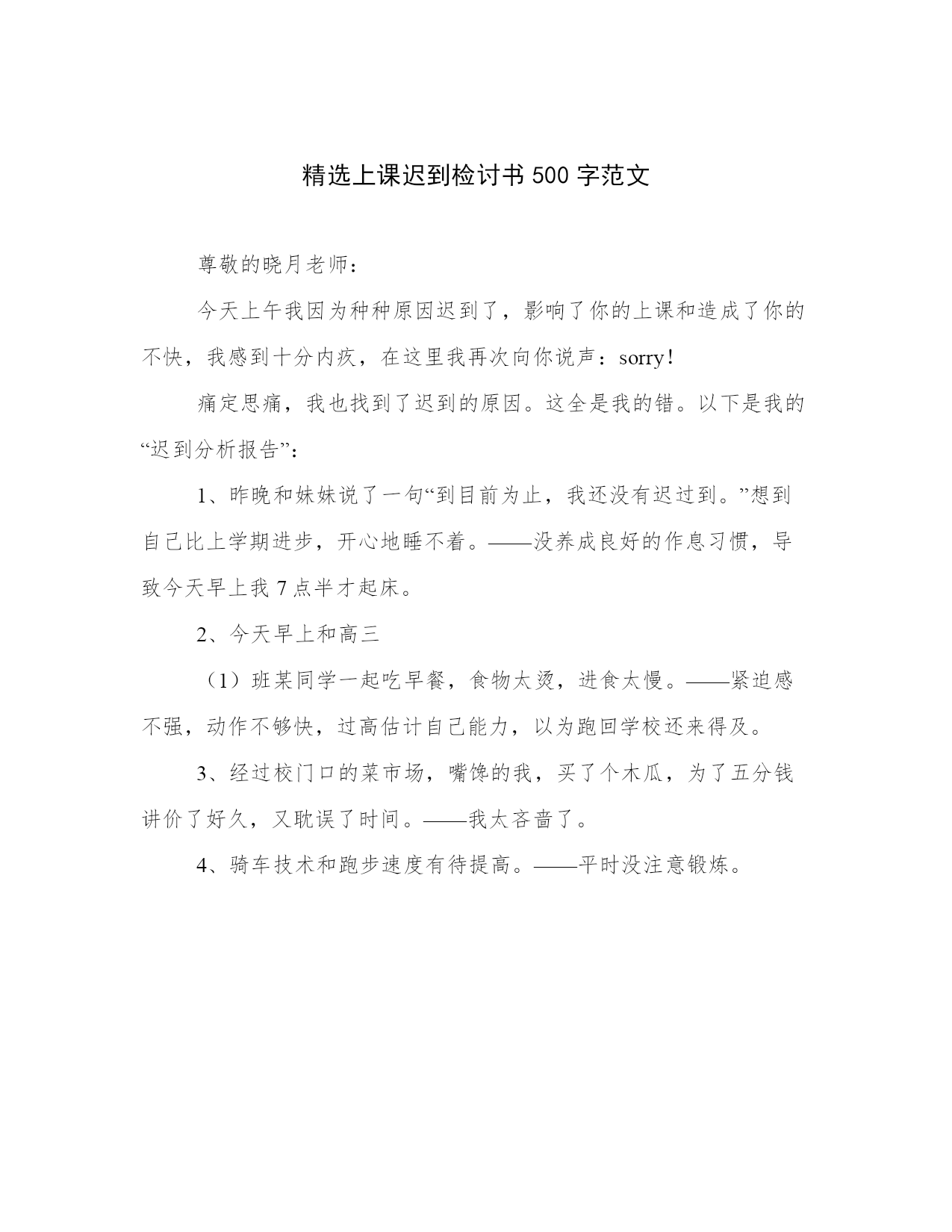 精选上课迟到检讨书500字范文