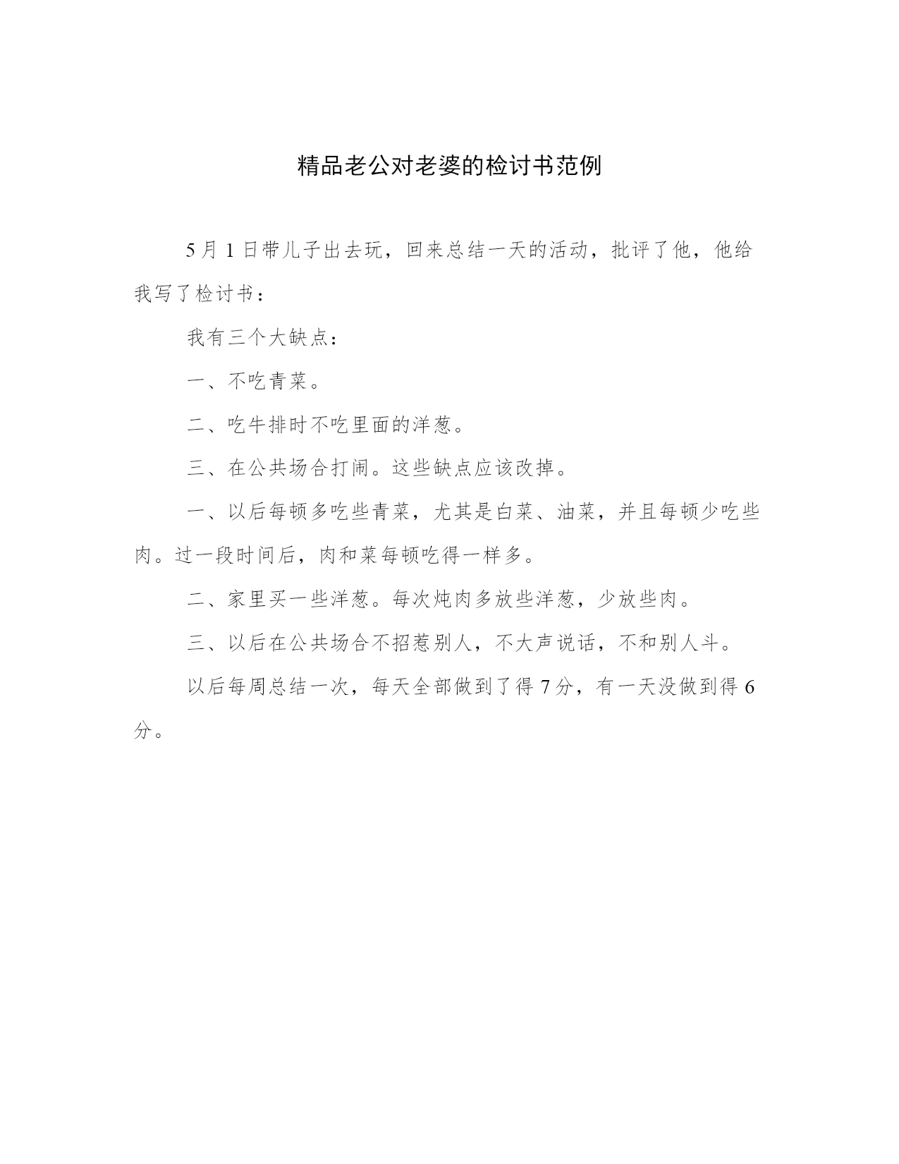 精品老公对老婆的检讨书范例