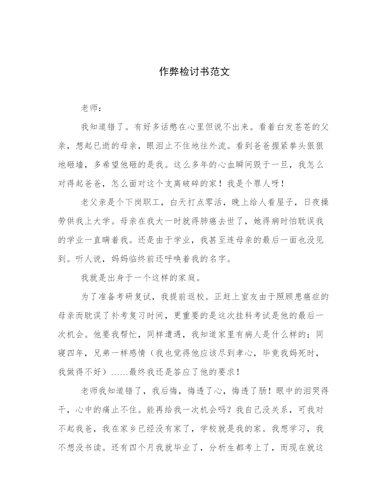 作弊检讨书范文
