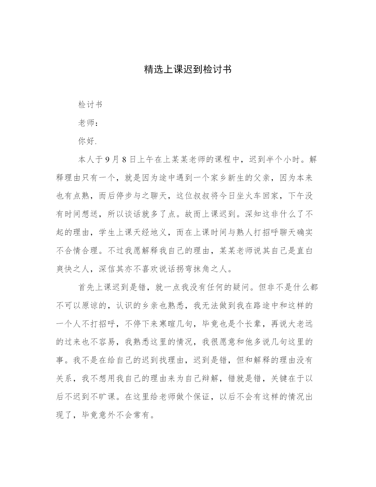 精选上课迟到检讨书
