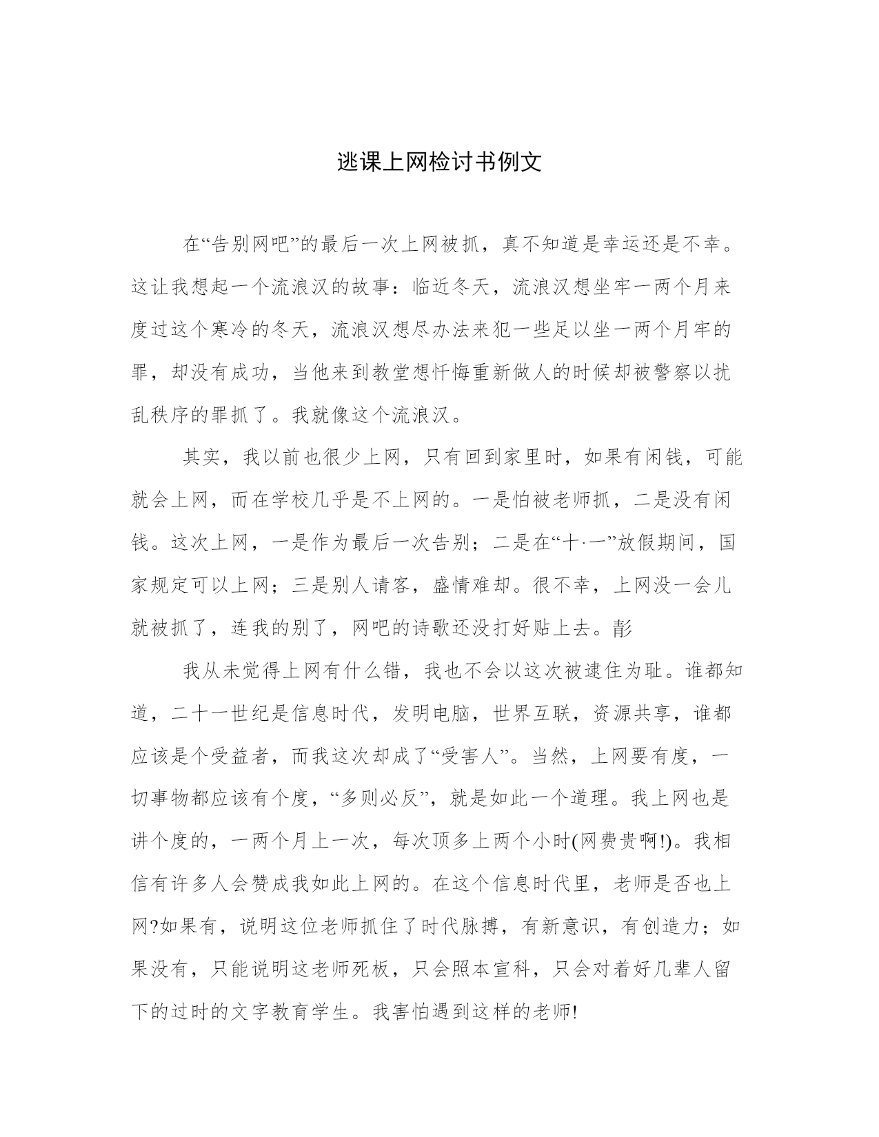 逃课上网检讨书例文