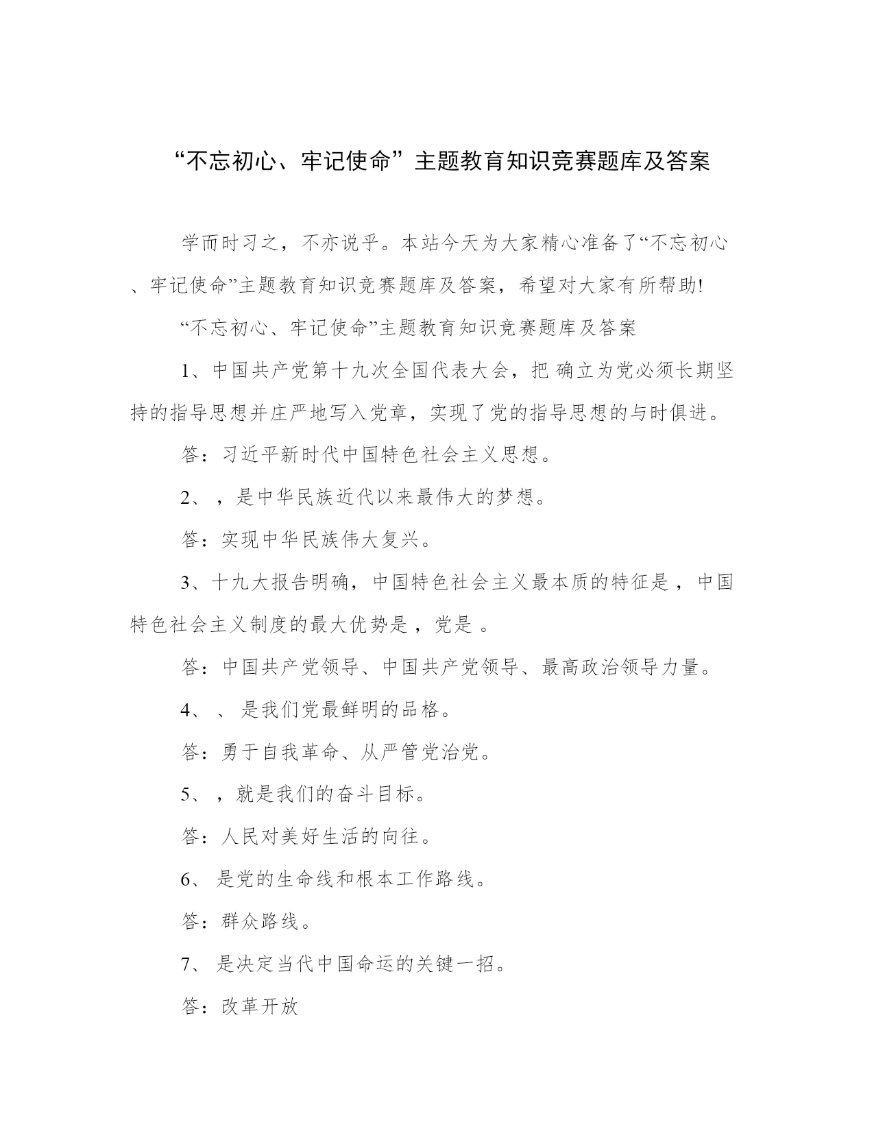 “不忘初心、牢记使命”主题教育知识竞赛题库及答案