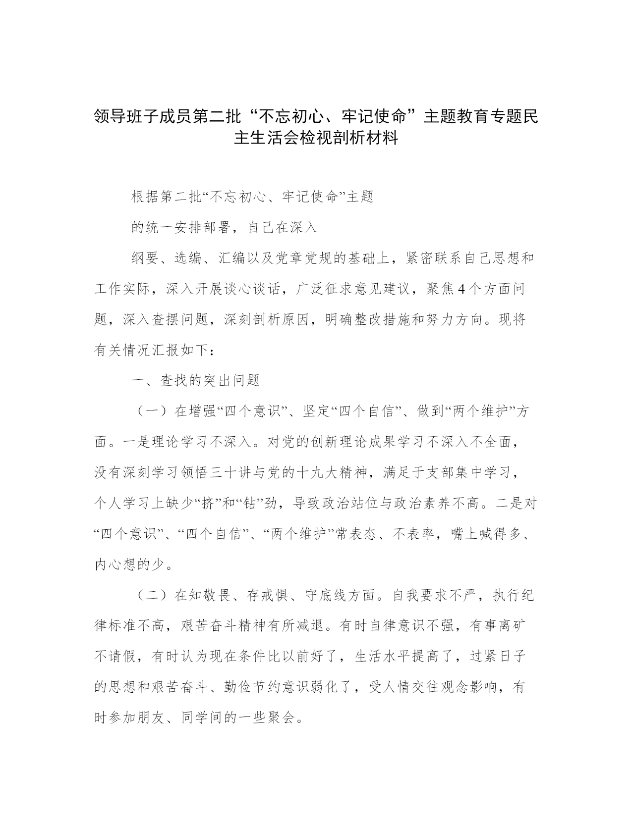 领导班子成员第二批“不忘初心、牢记使命”主题教育专题民主生活会检视剖析材料