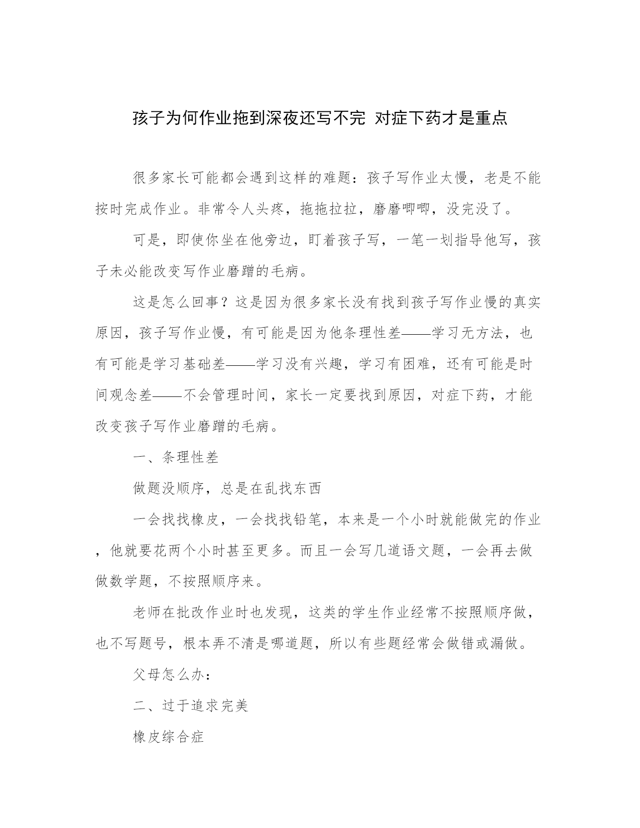 孩子为何作业拖到深夜还写不完 对症下药才是重点