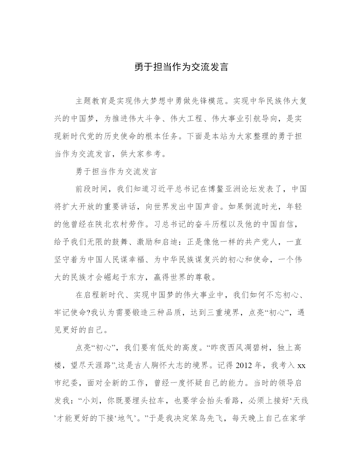勇于担当作为交流发言