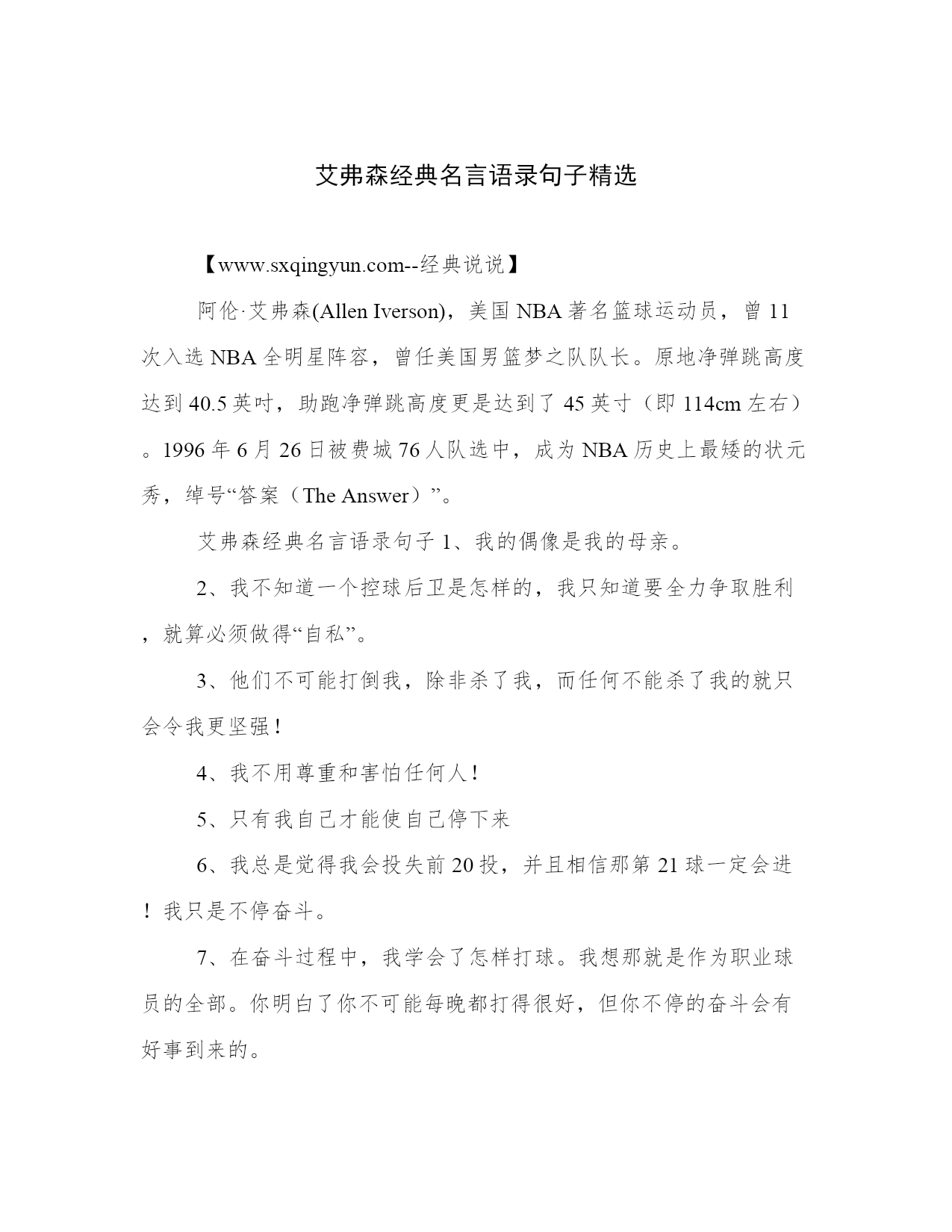 艾弗森经典名言语录句子精选