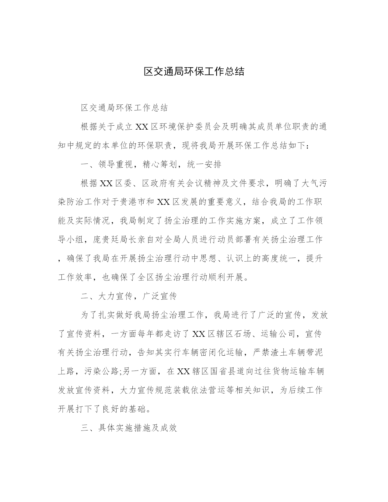 区交通局环保工作总结