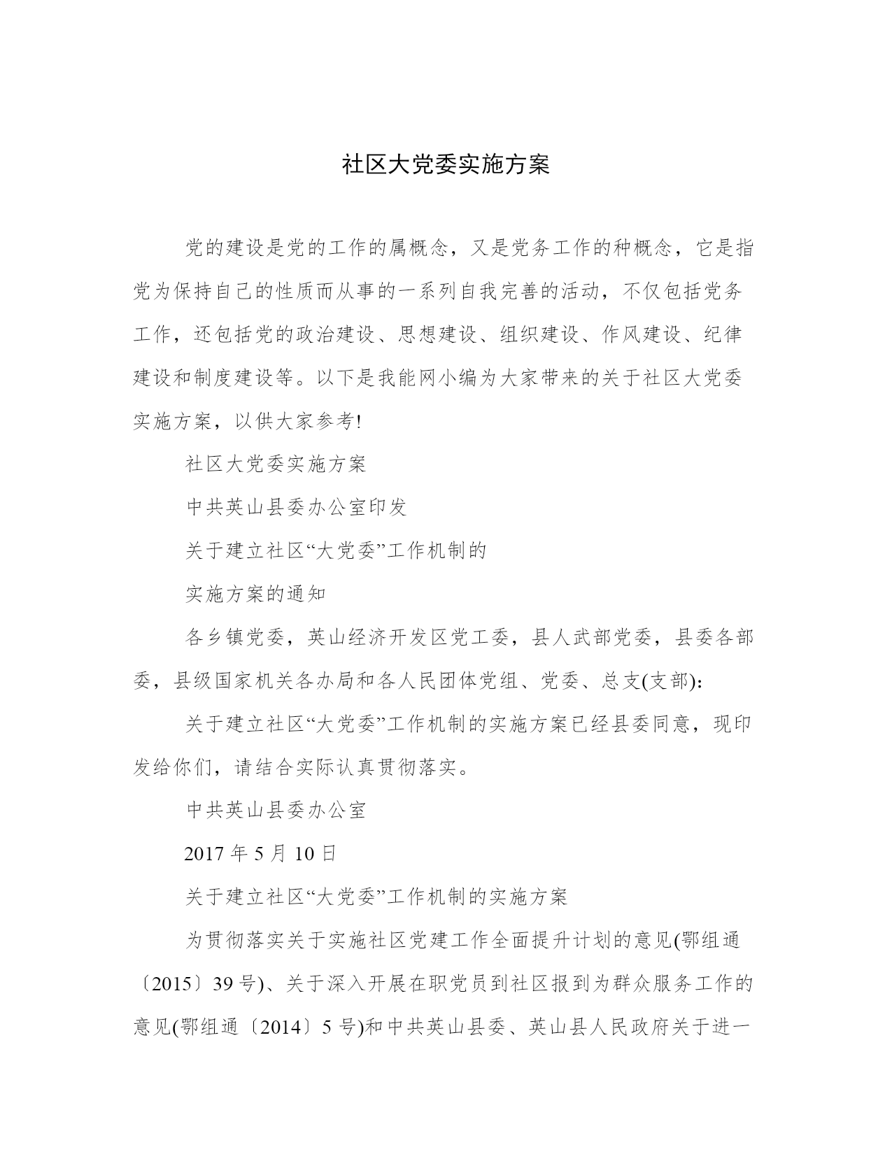 社区大党委实施方案