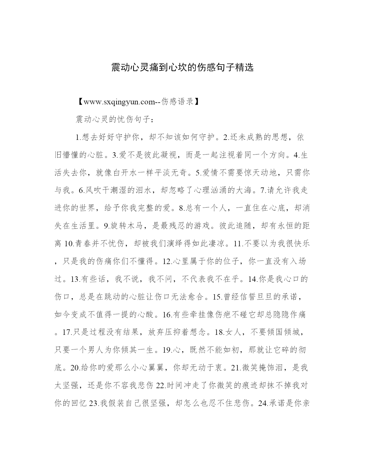 震动心灵痛到心坎的伤感句子精选