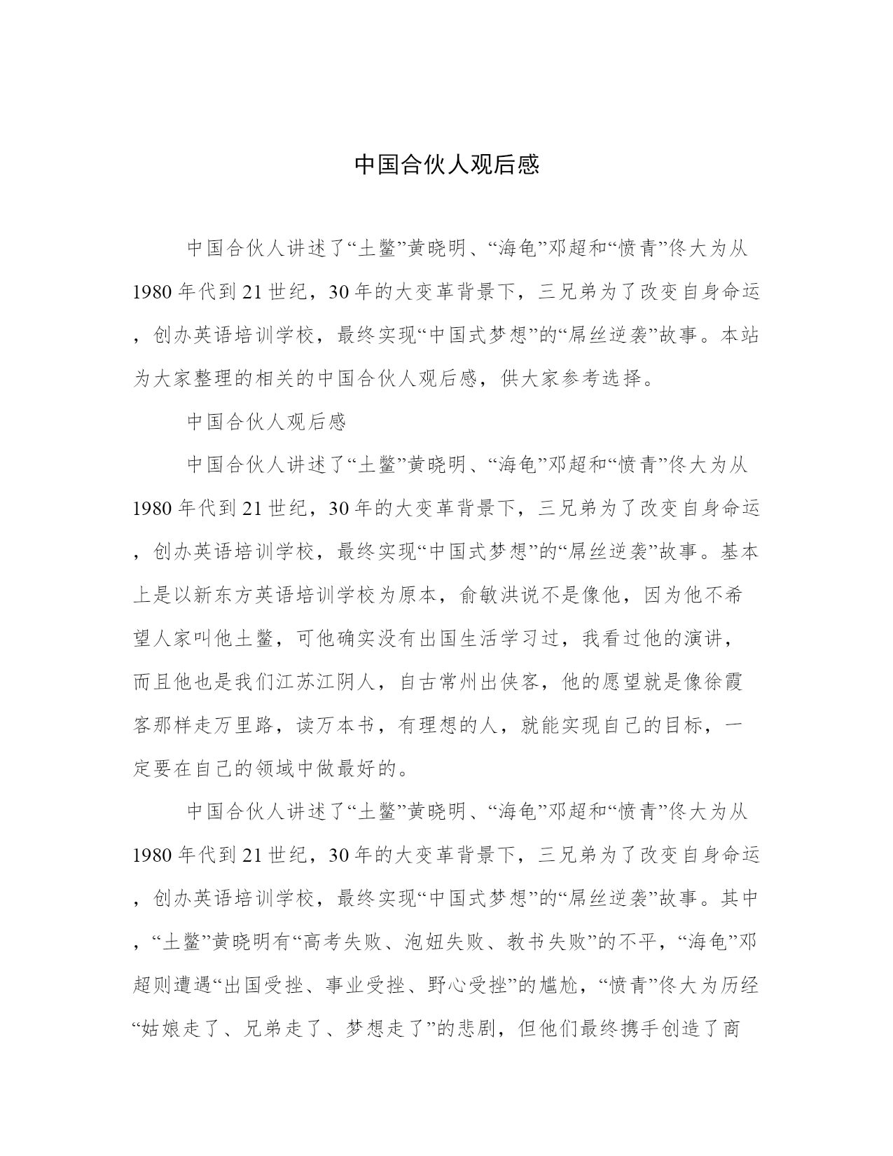 中国合伙人观后感
