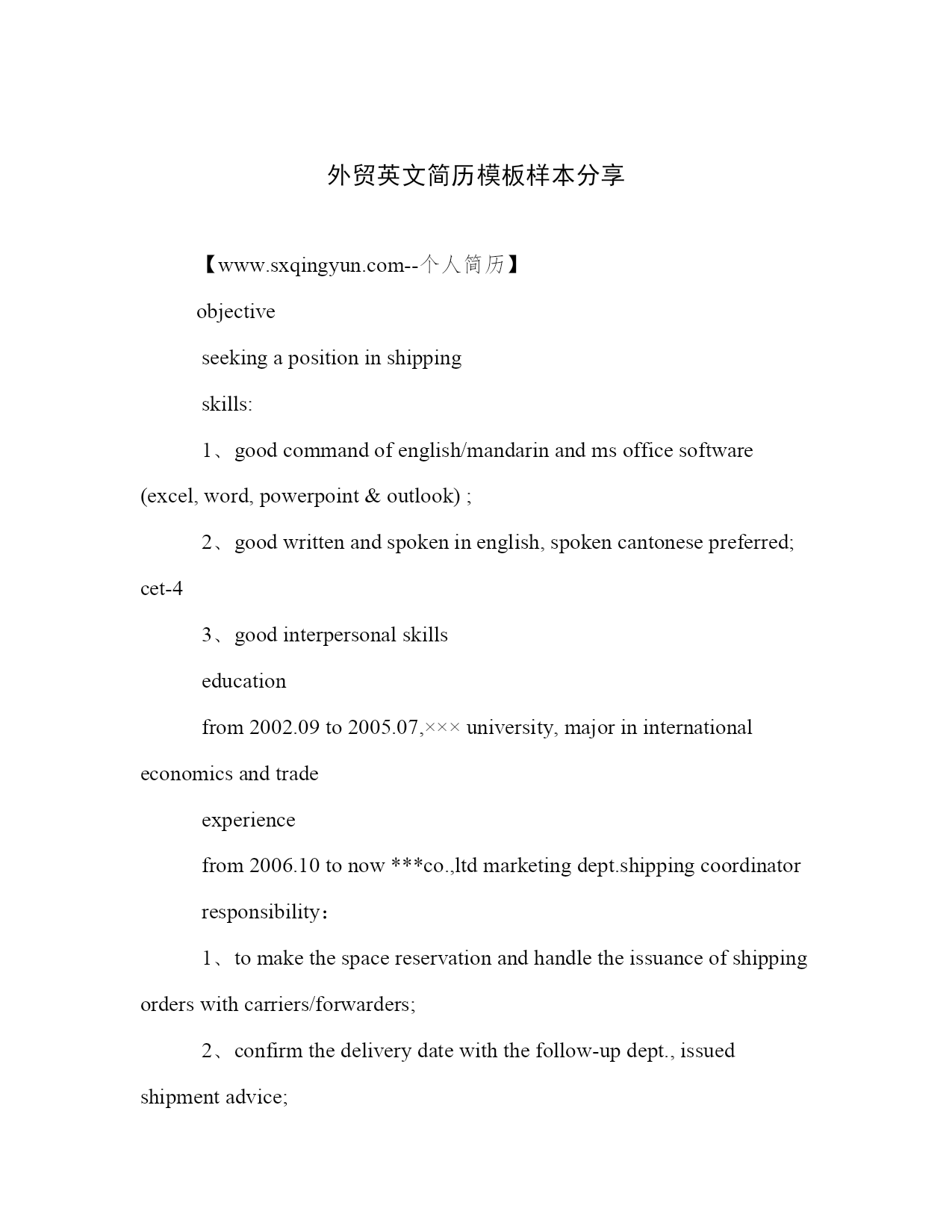 外贸英文简历模板样本分享