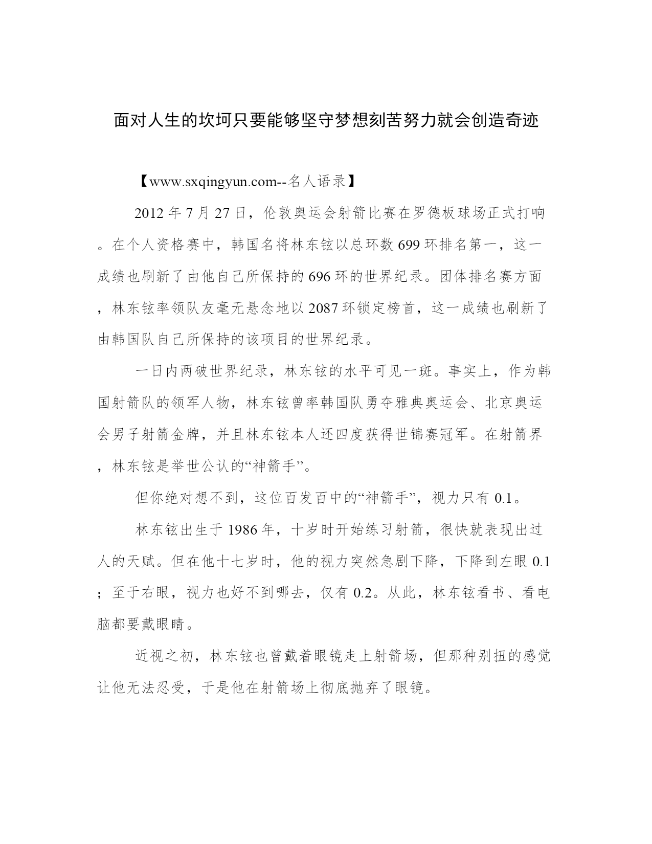 面对人生的坎坷只要能够坚守梦想刻苦努力就会创造奇迹