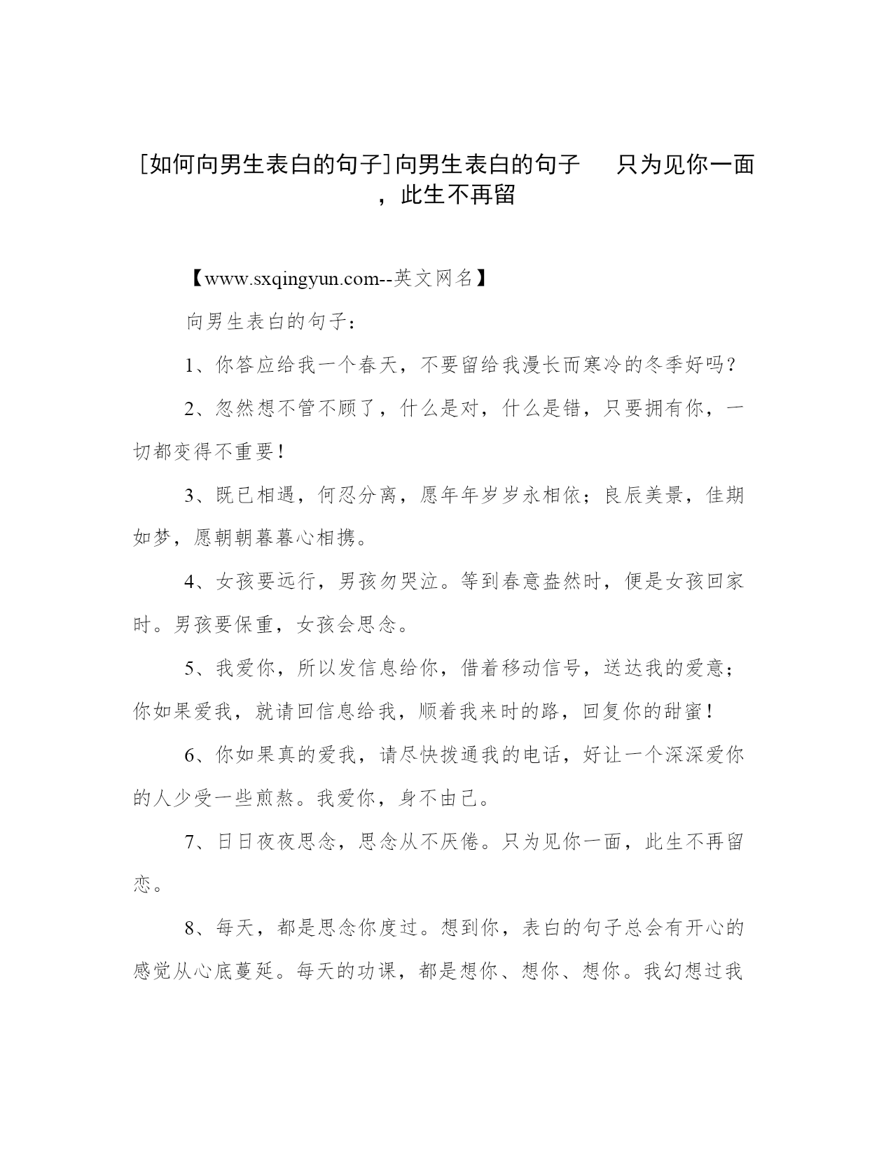 [如何向男生表白的句子]向男生表白的句子 只为见你一面,此生不再留