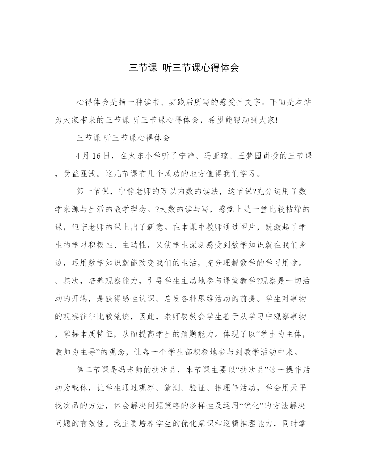 三节课 听三节课心得体会